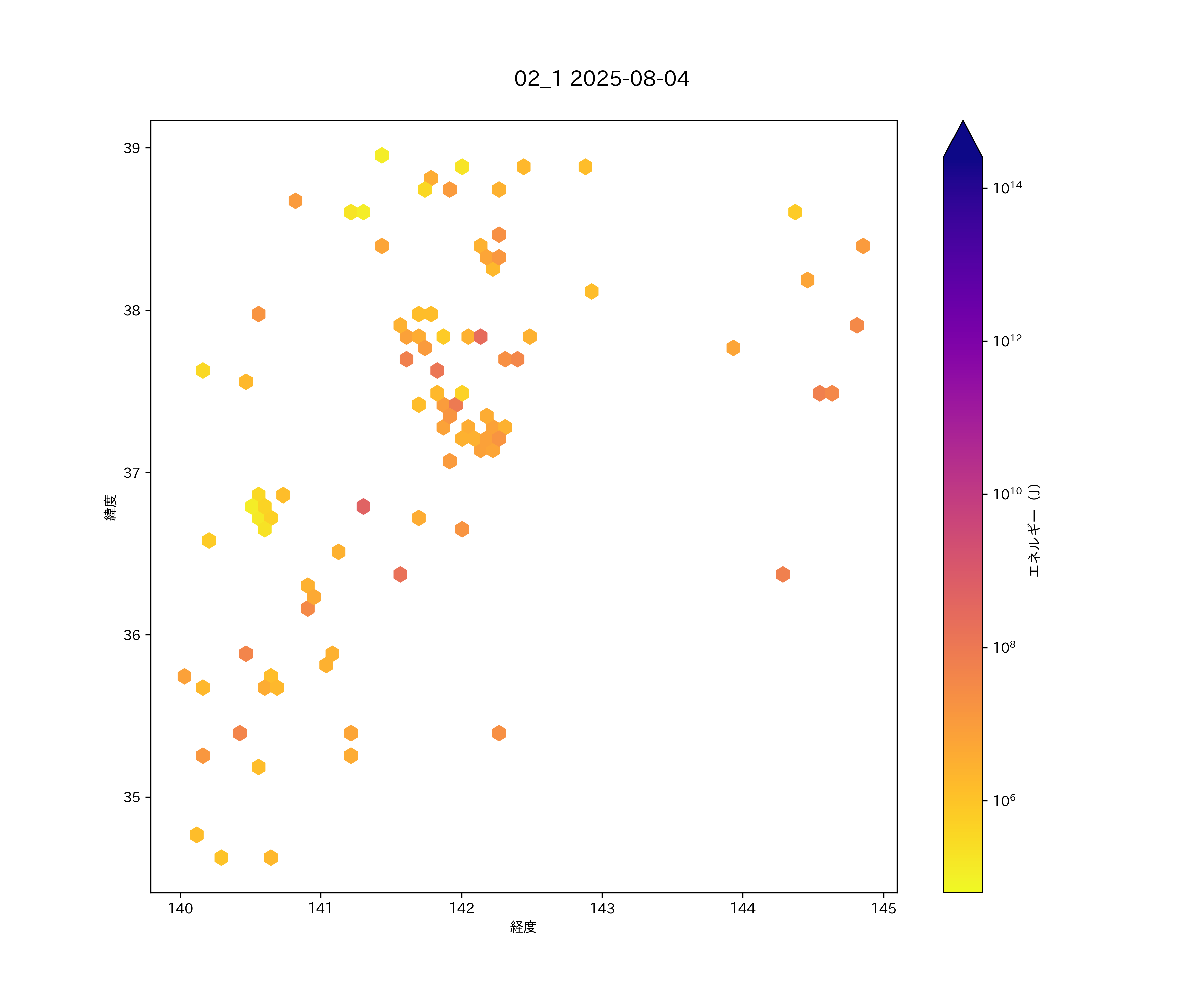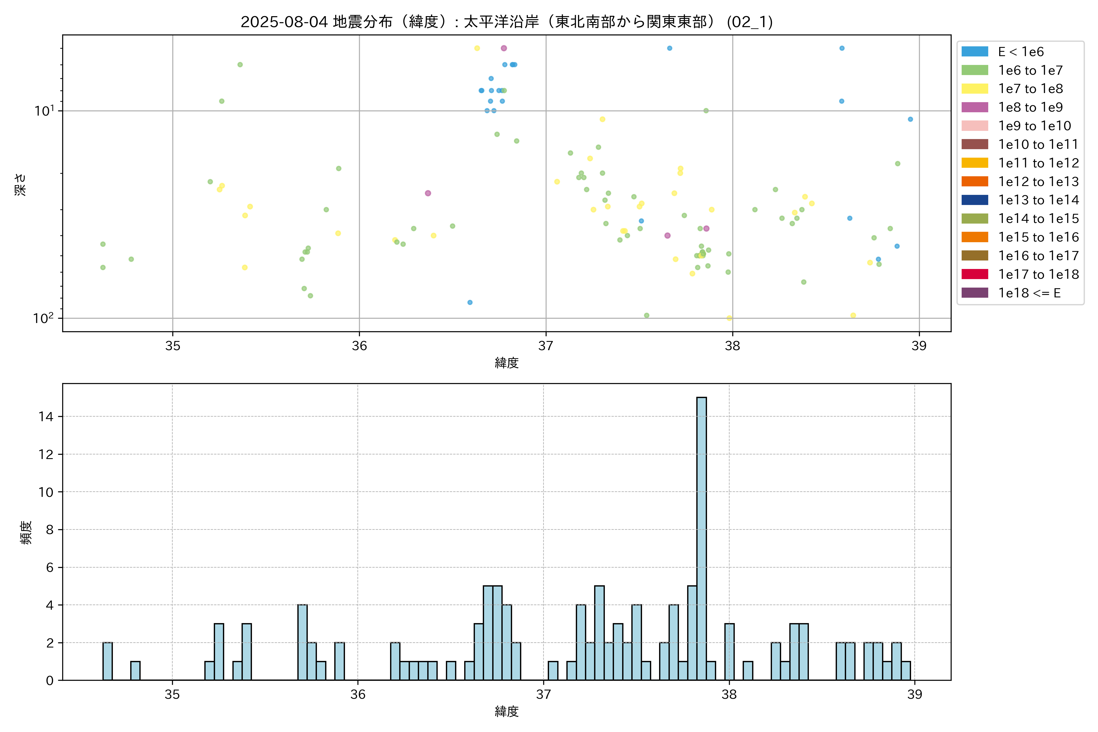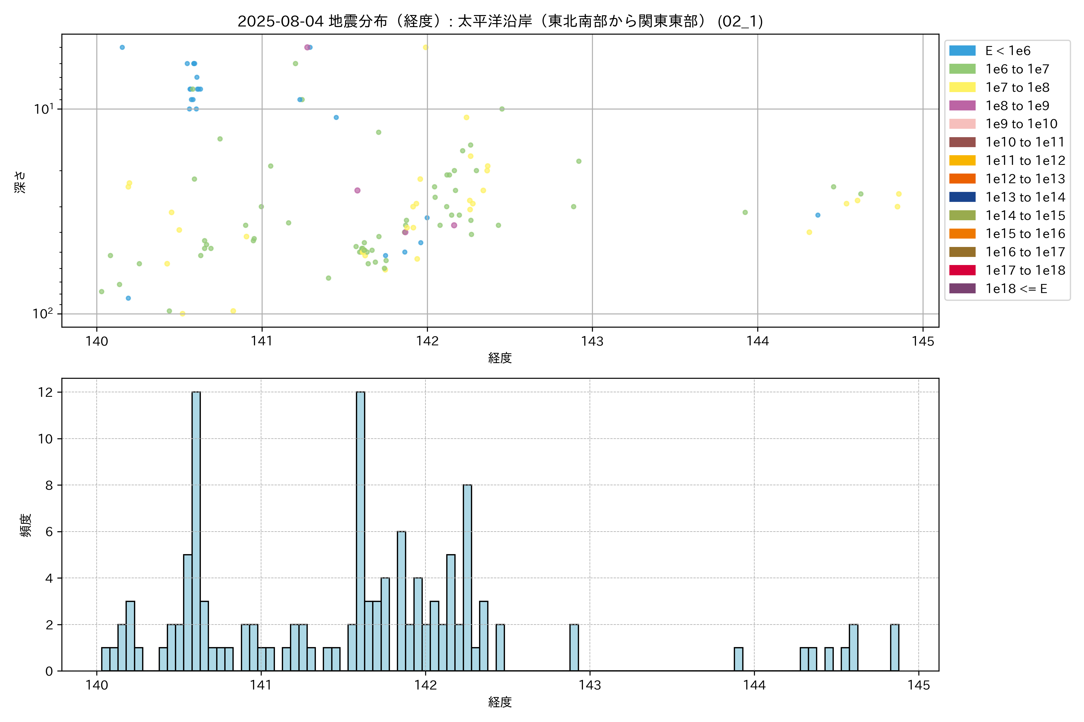 2025年08月04日 太平洋沿岸(東北南部から関東東部) エリア震源マップ