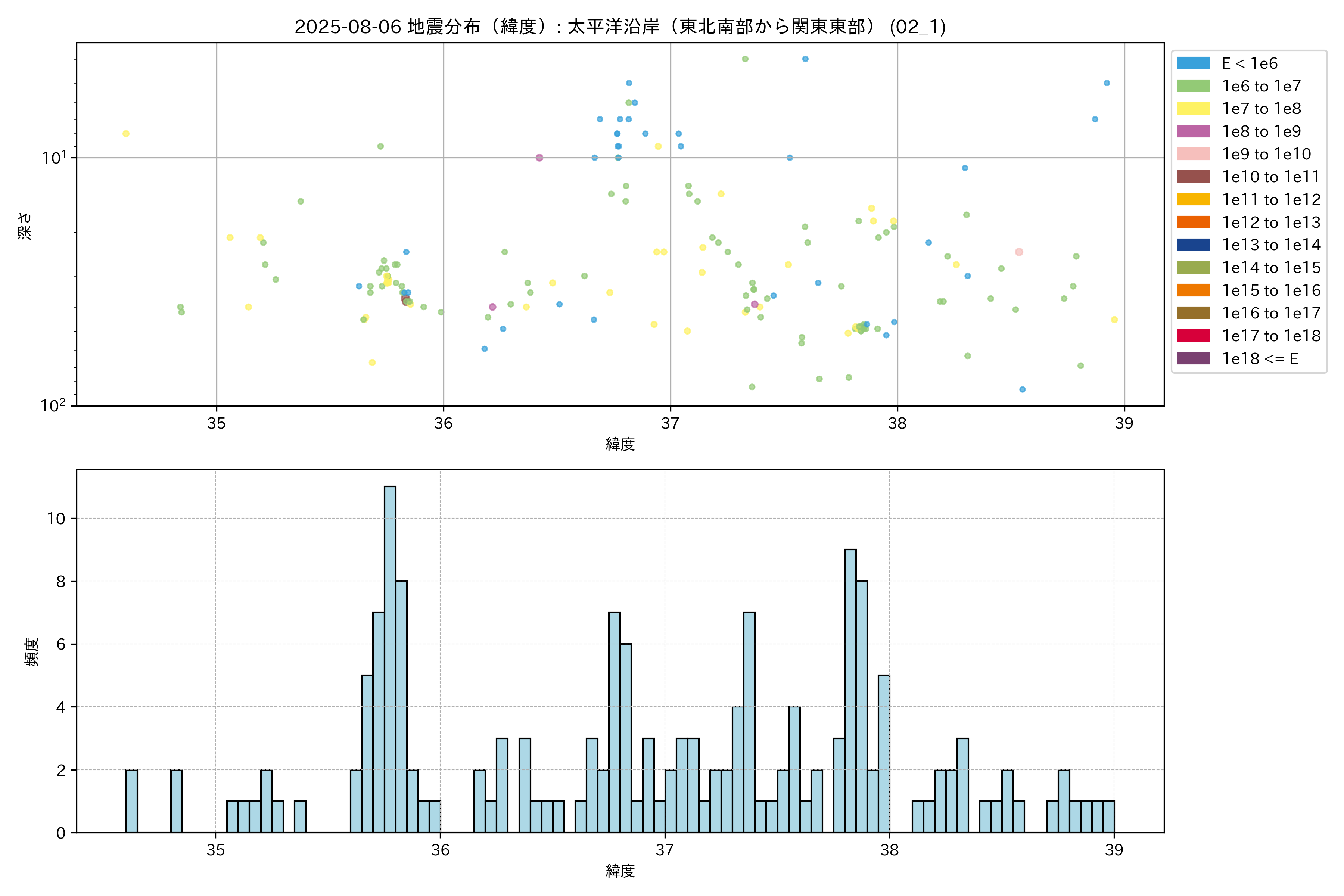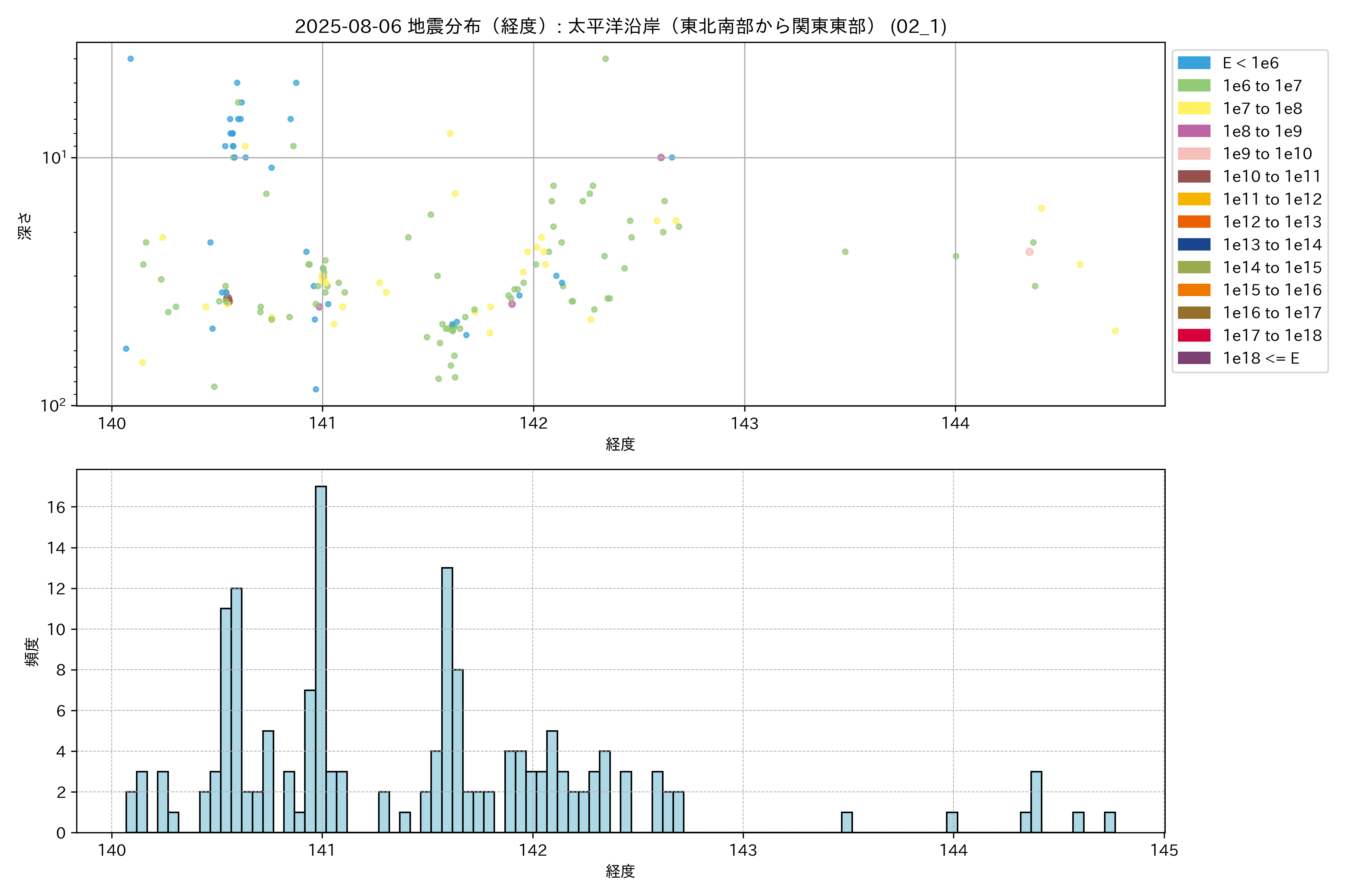 2025年08月06日 太平洋沿岸(東北南部から関東東部) エリア震源マップ