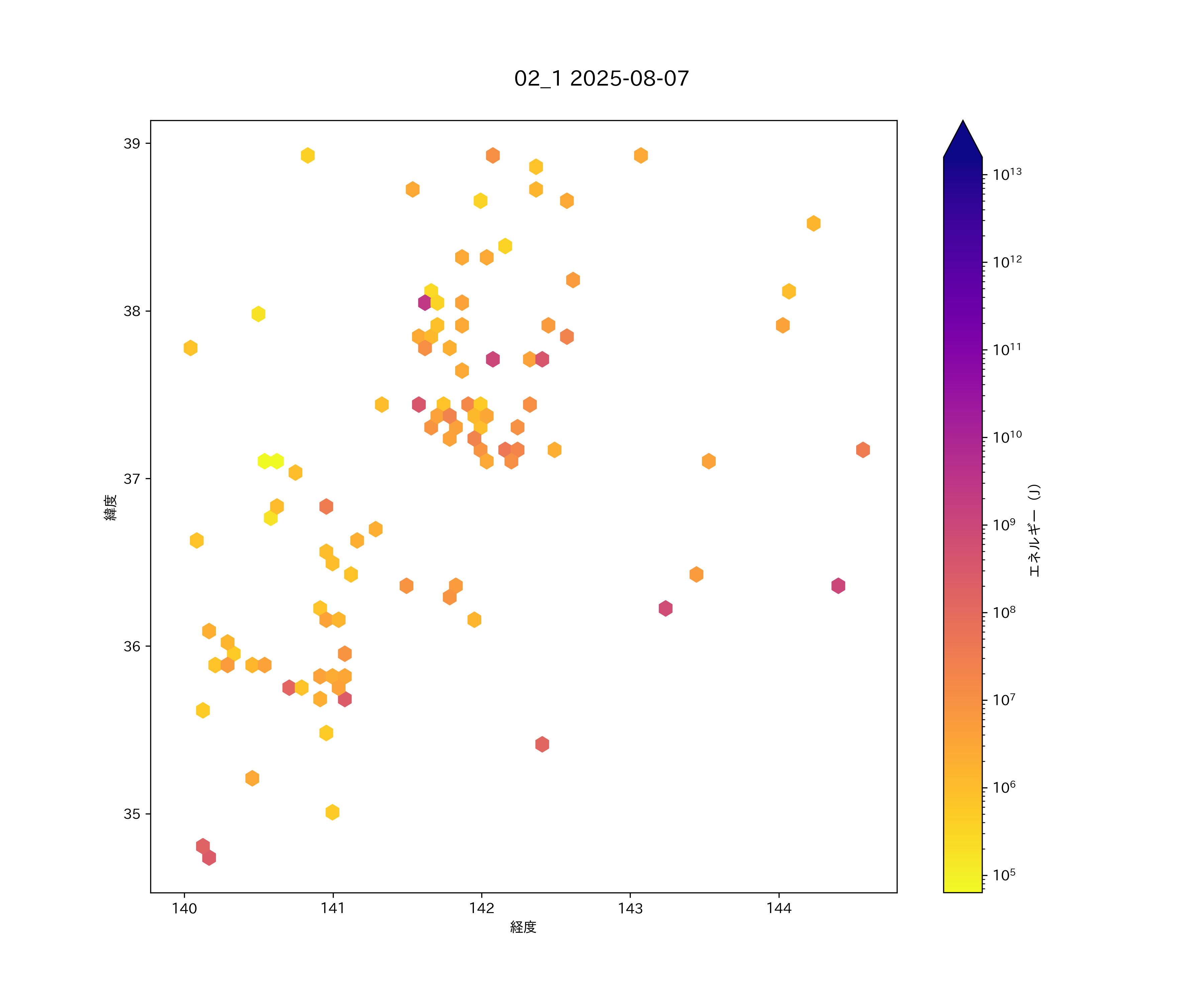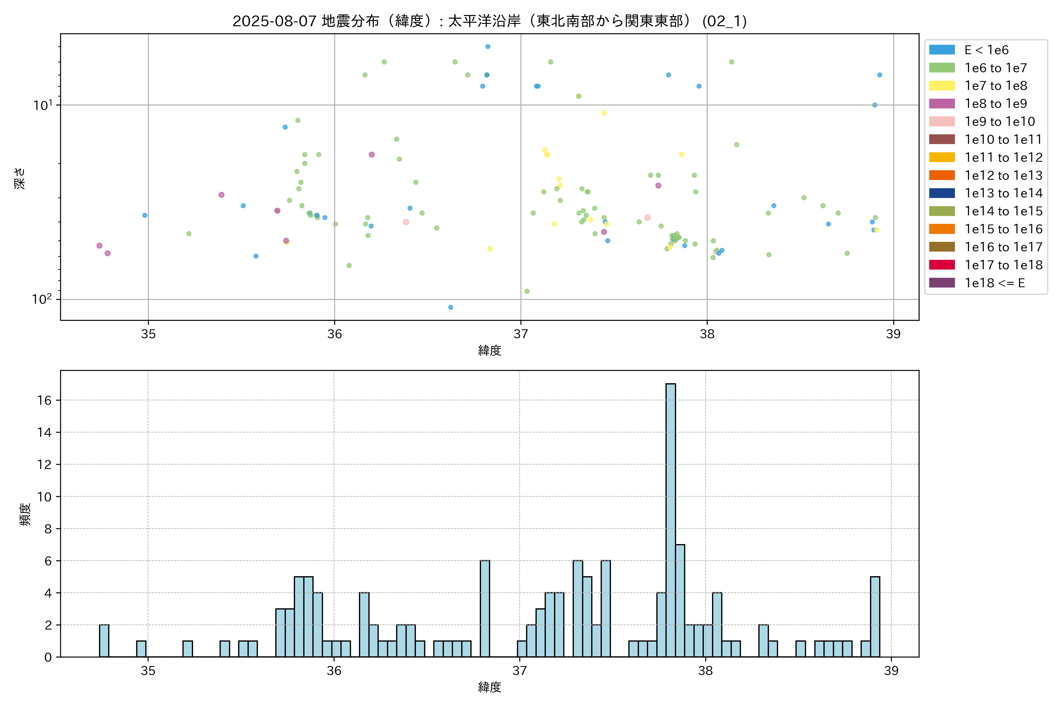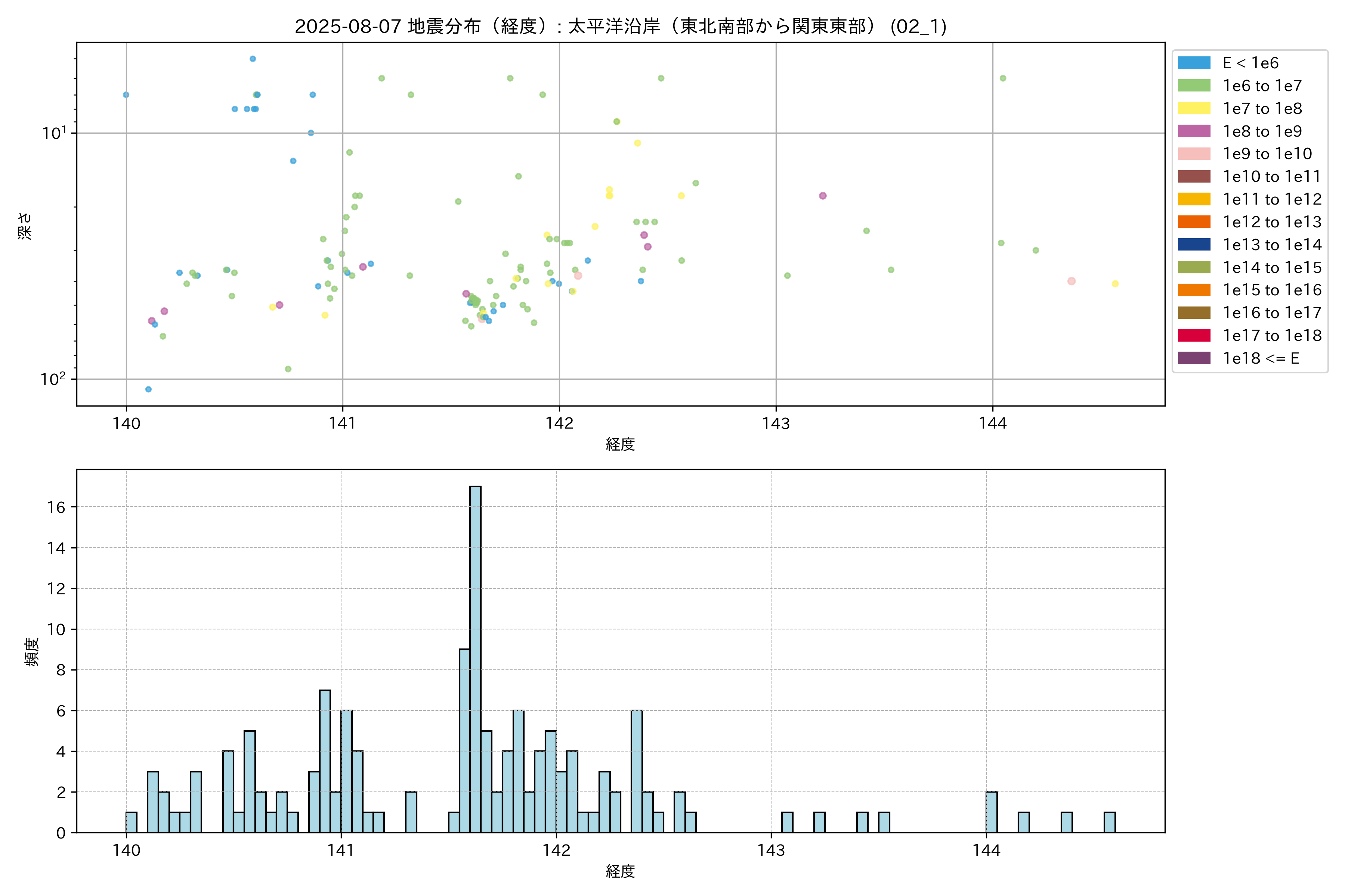 2025年08月07日 太平洋沿岸(東北南部から関東東部) エリア震源マップ