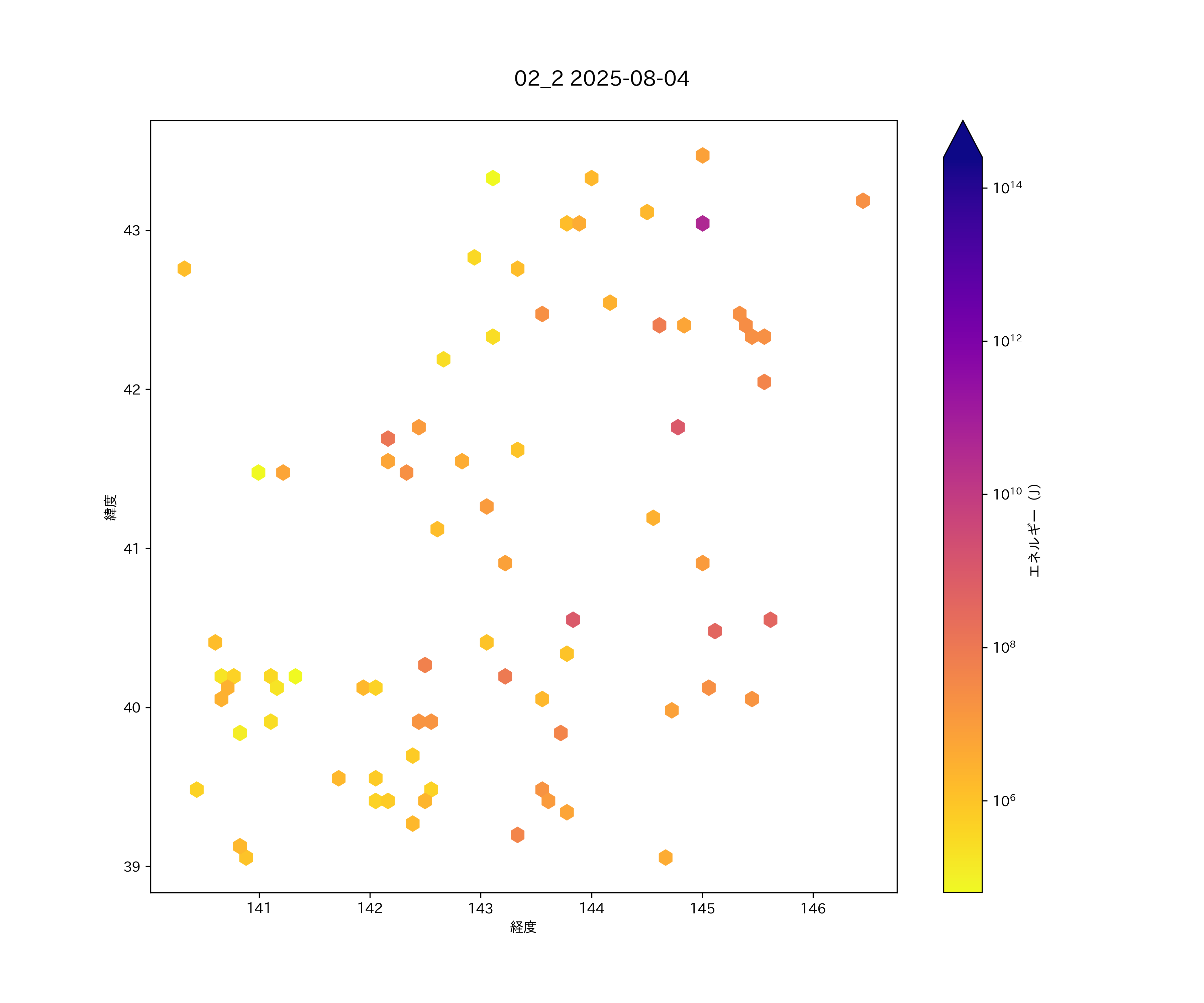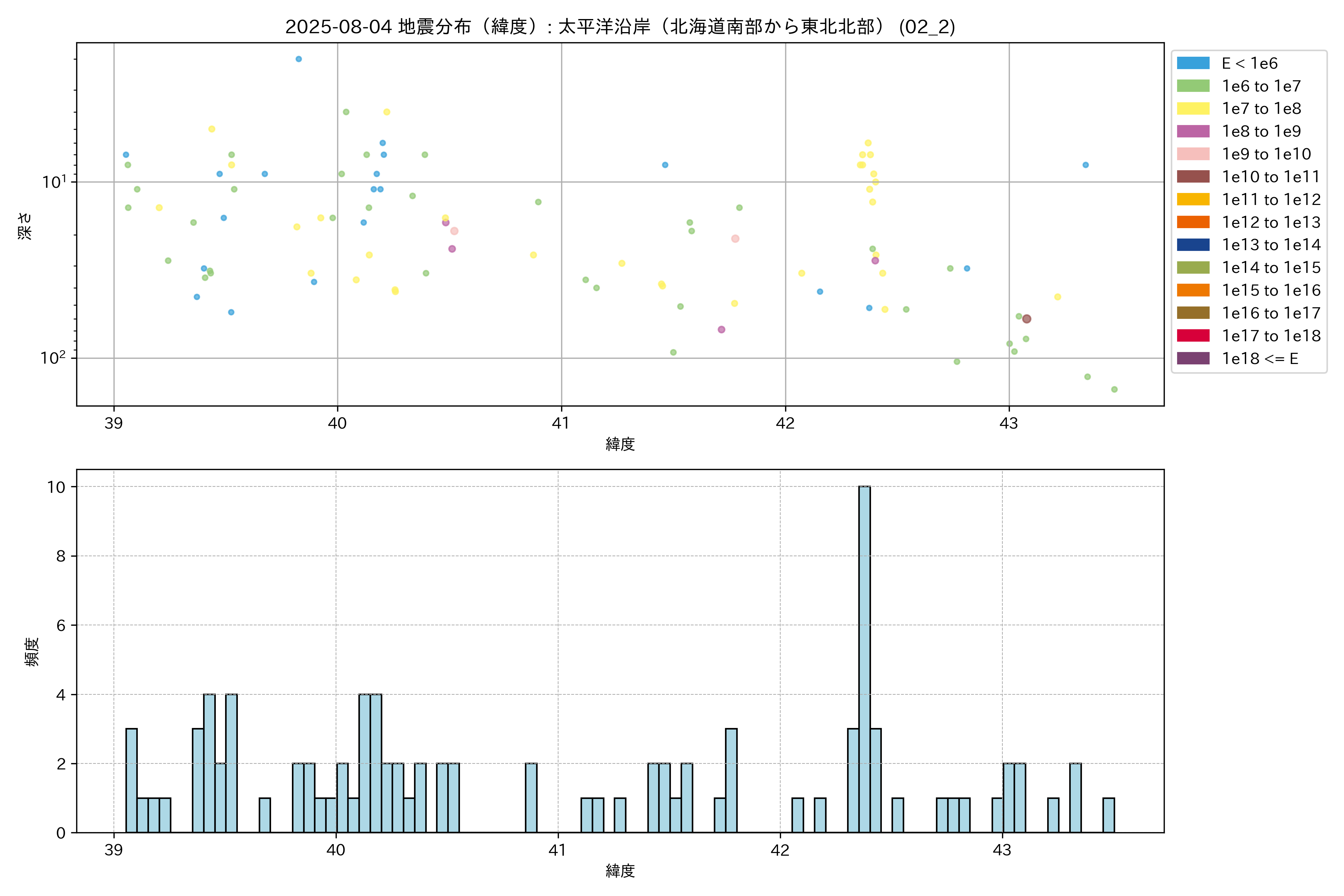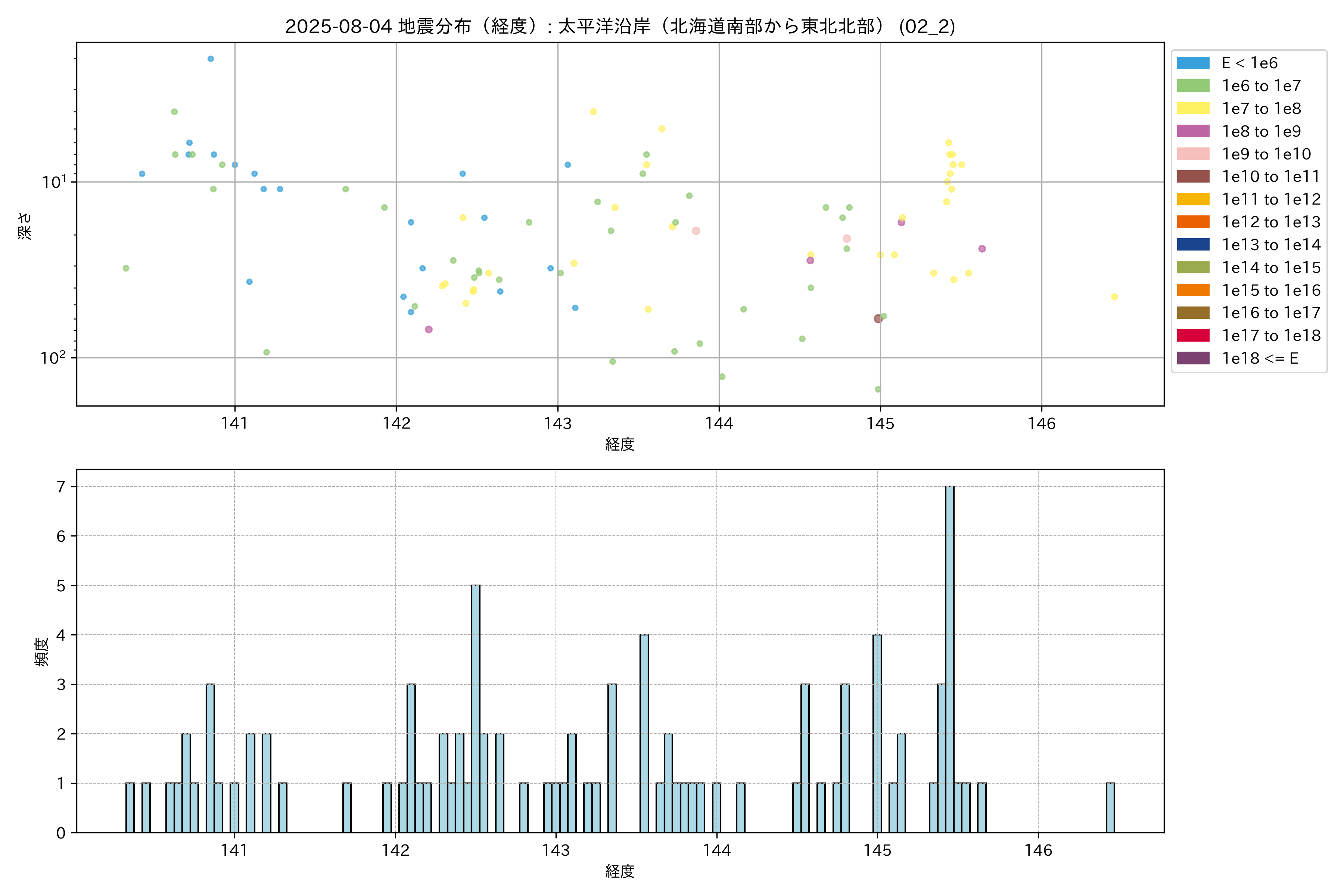 2025年08月04日 太平洋沿岸(北海道南部から東北北部) エリア震源マップ