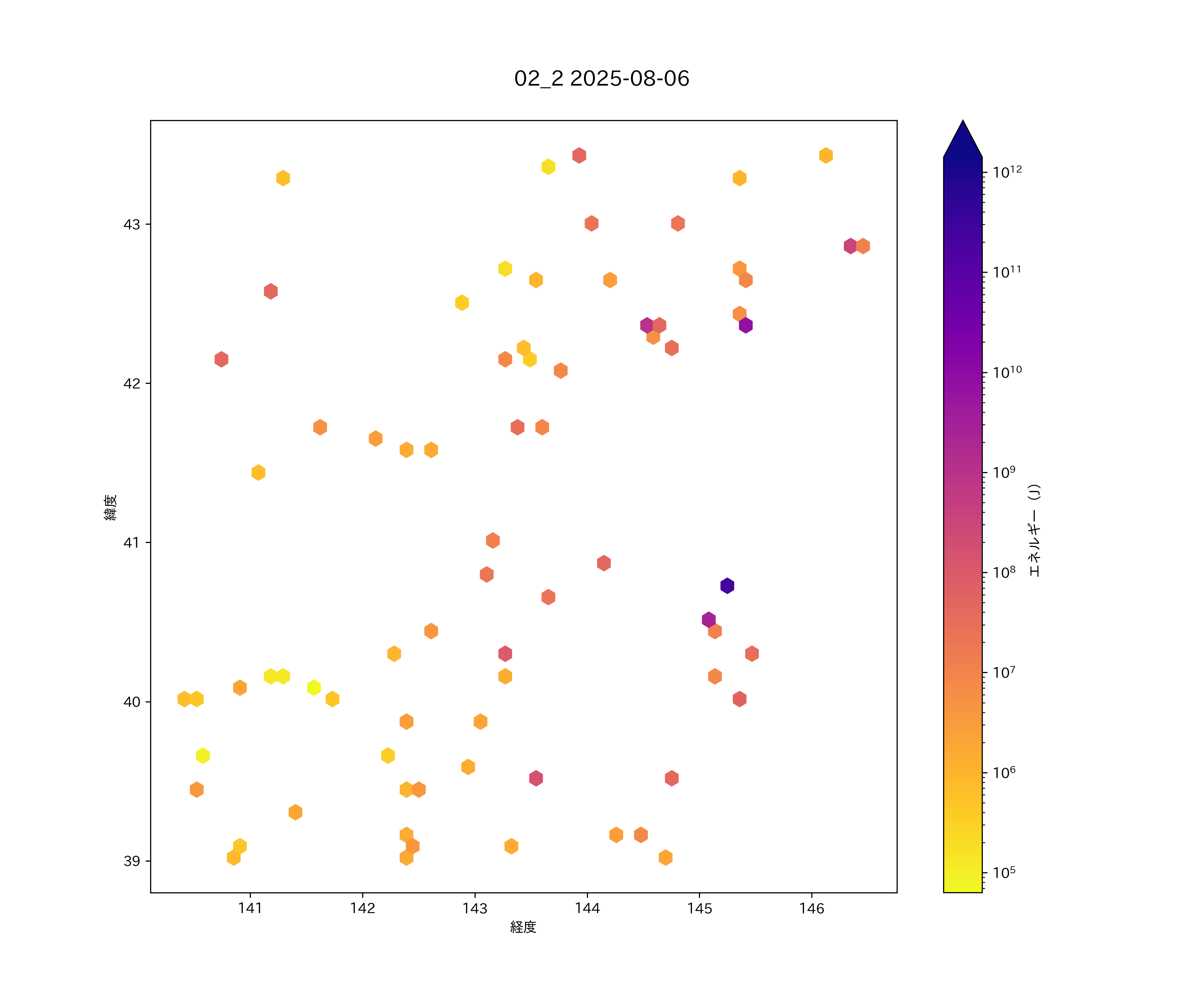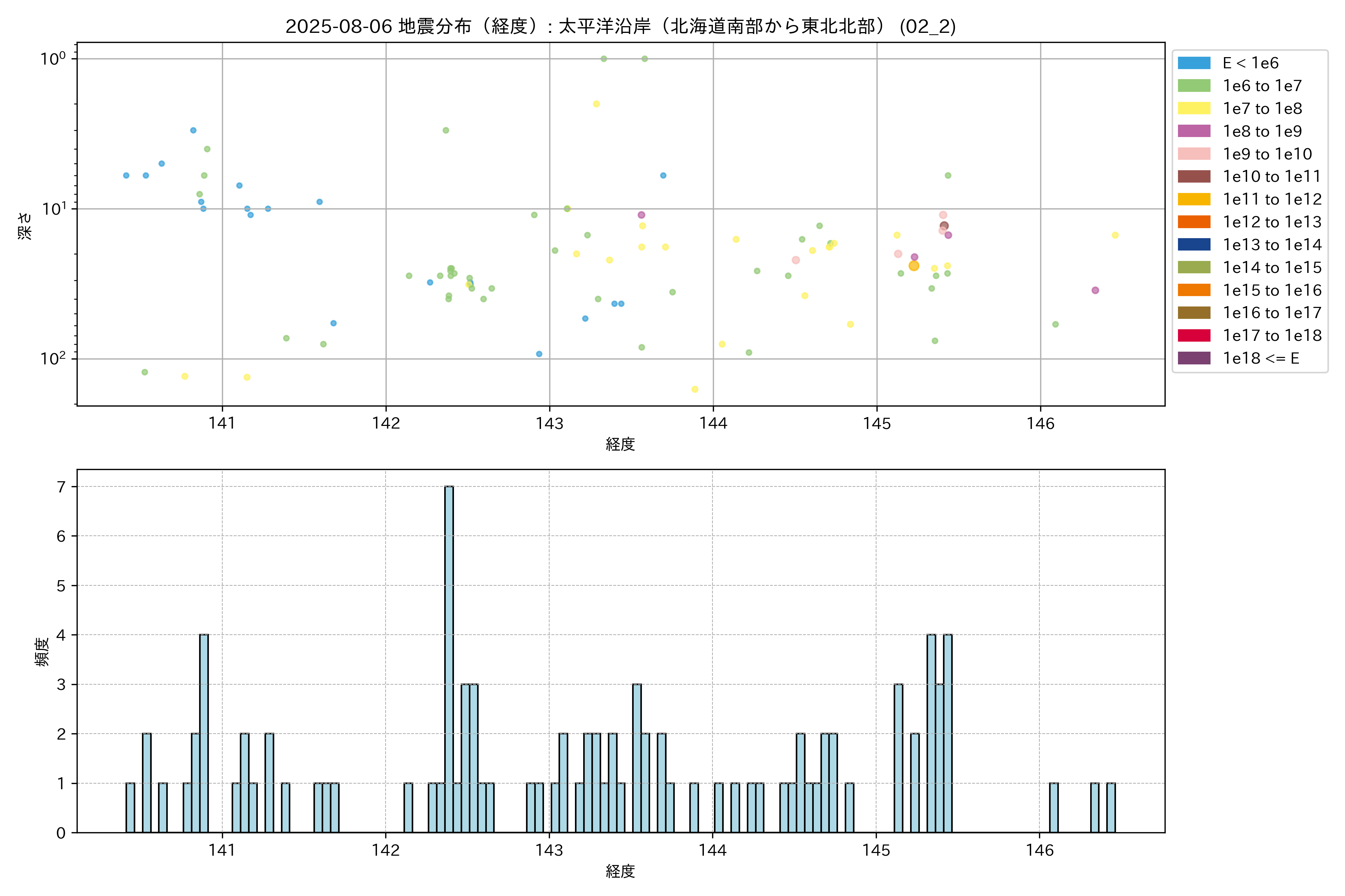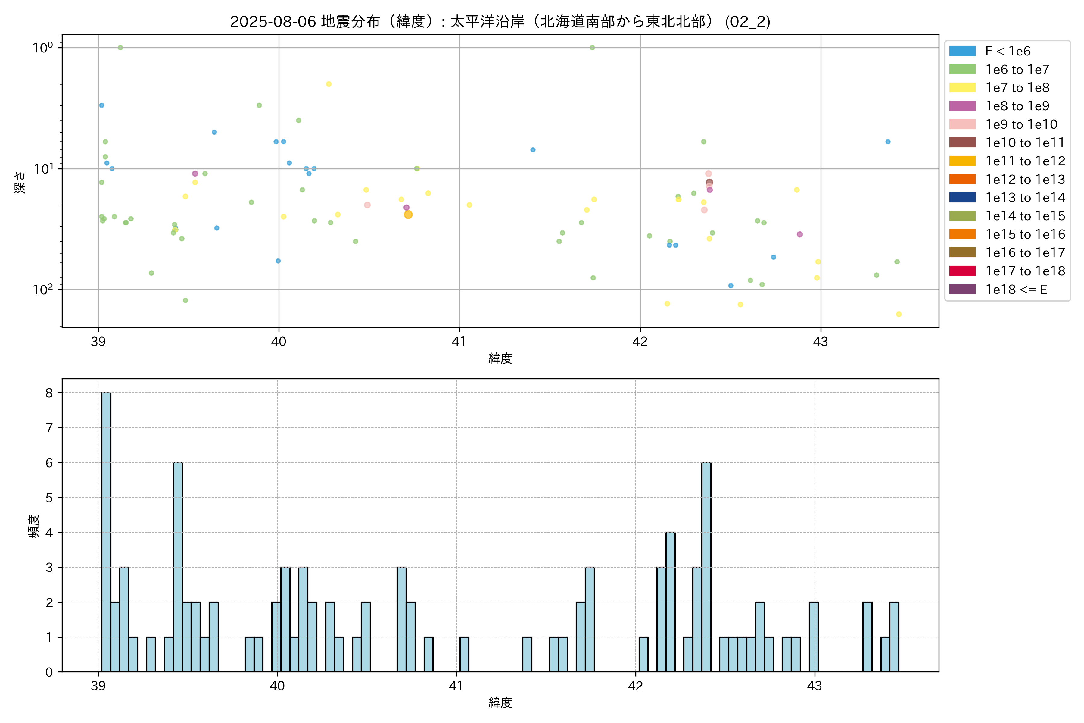 2025年08月06日 太平洋沿岸(北海道南部から東北北部) エリア震源マップ