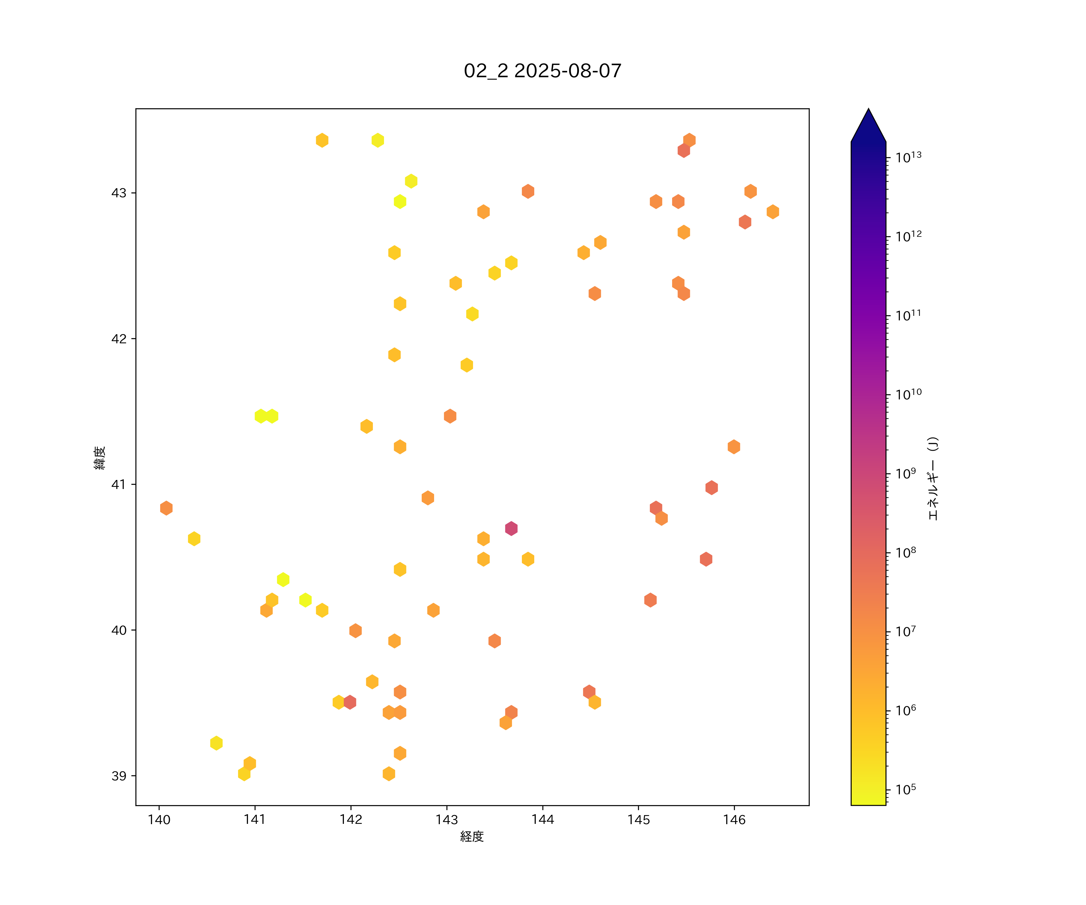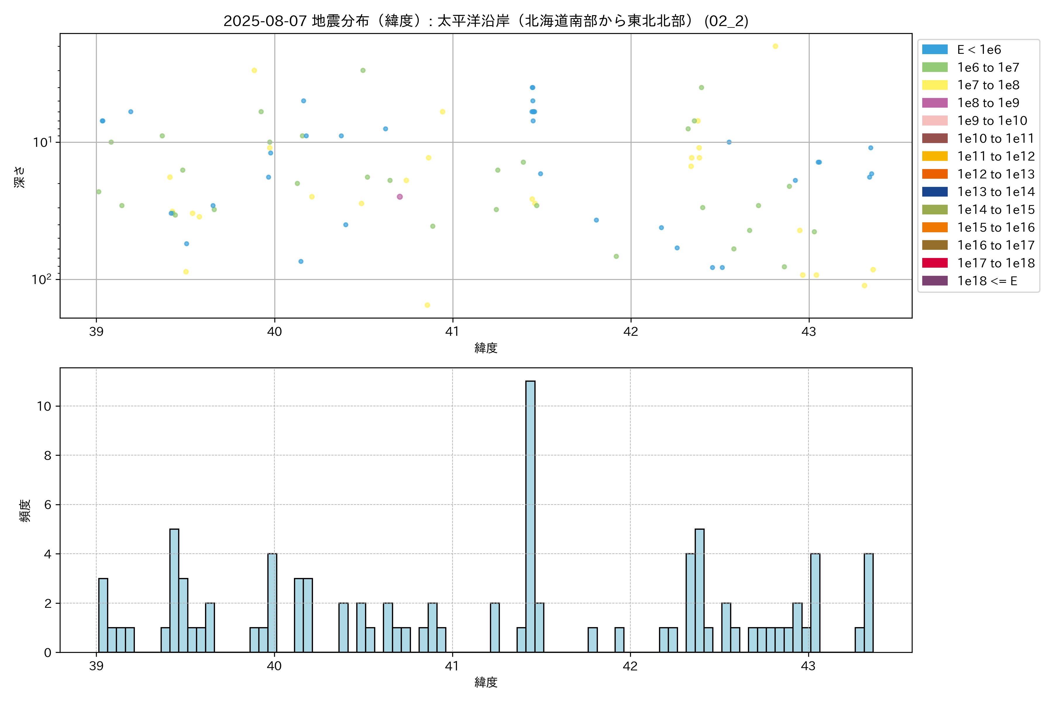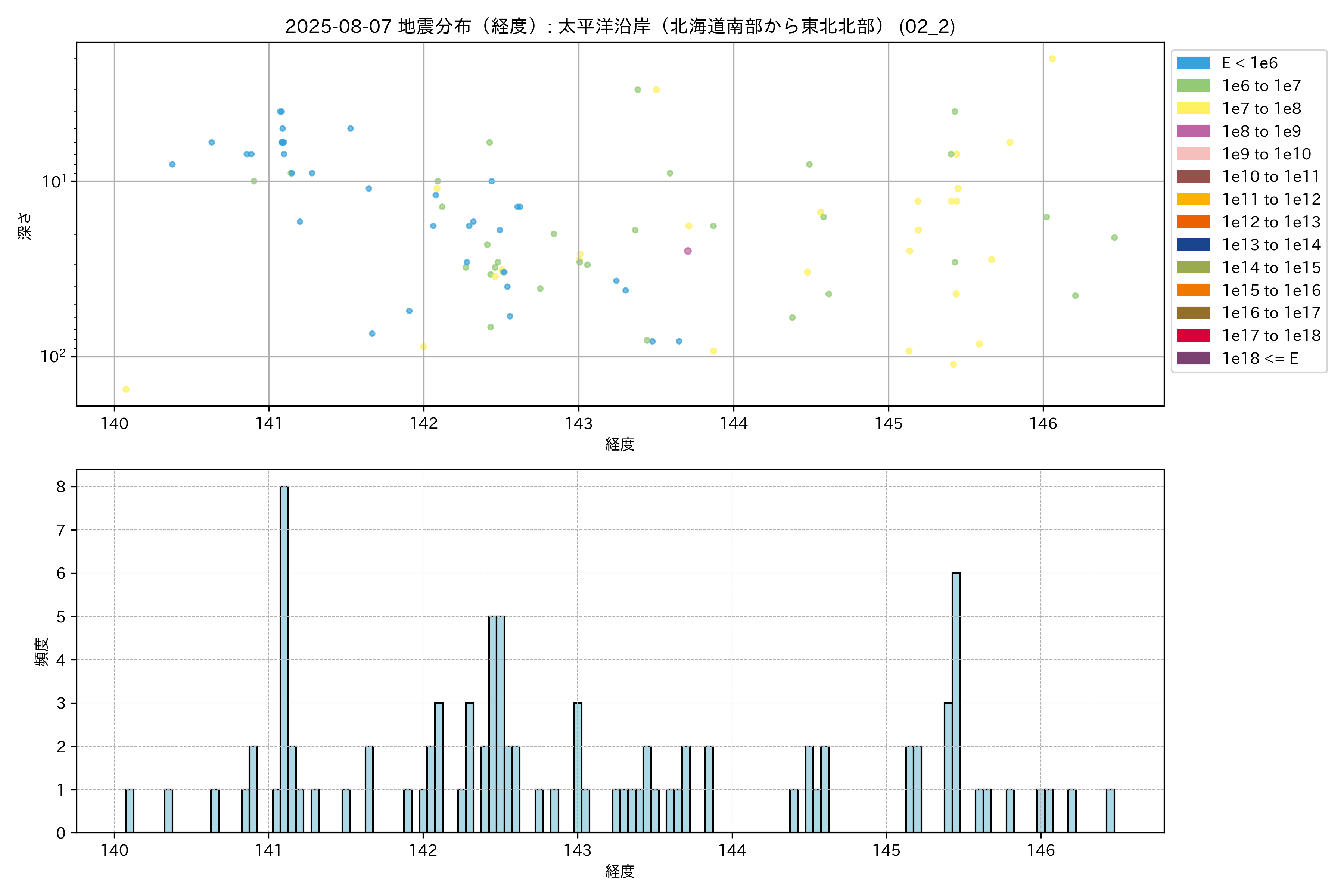 2025年08月07日 太平洋沿岸(北海道南部から東北北部) エリア震源マップ