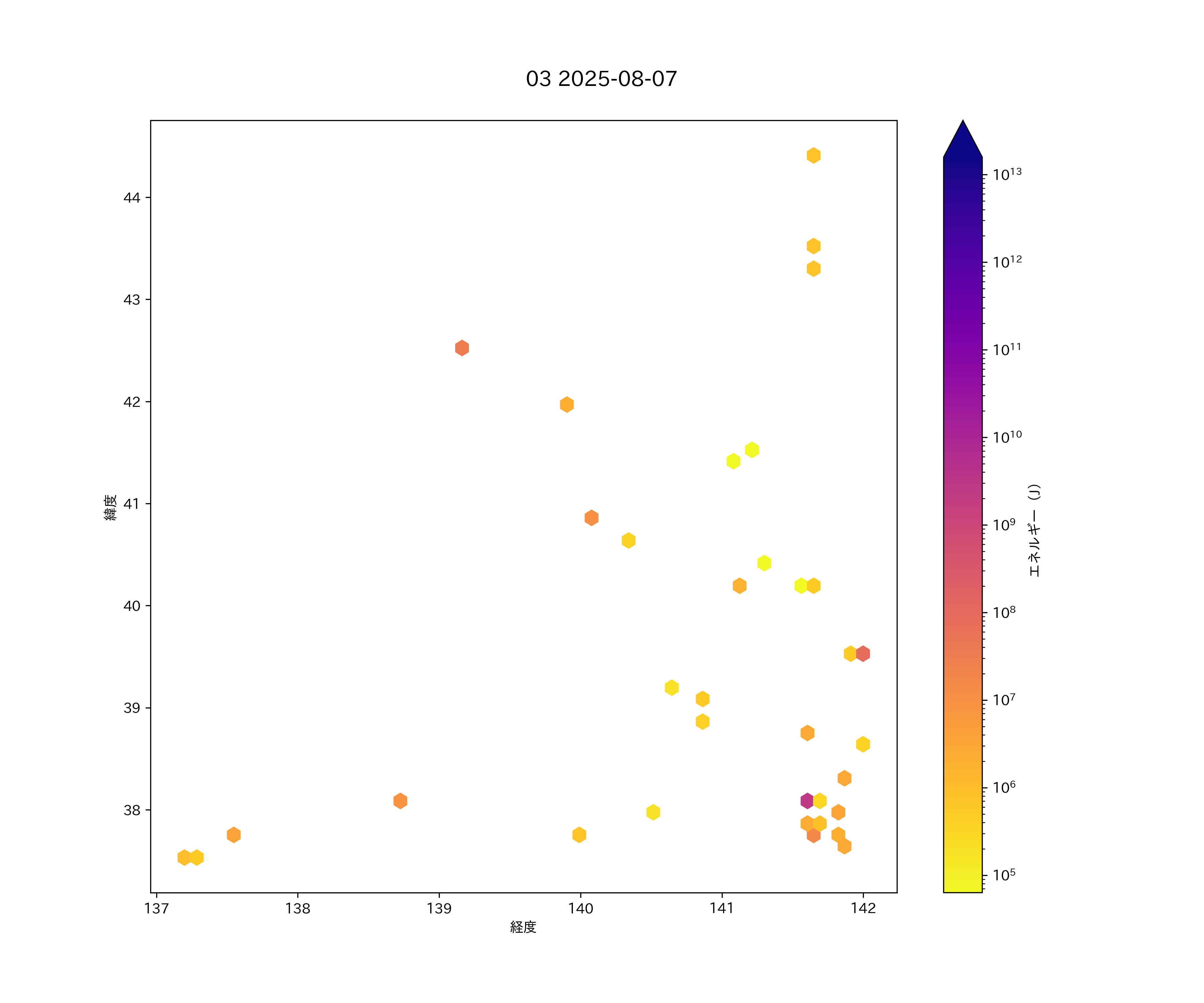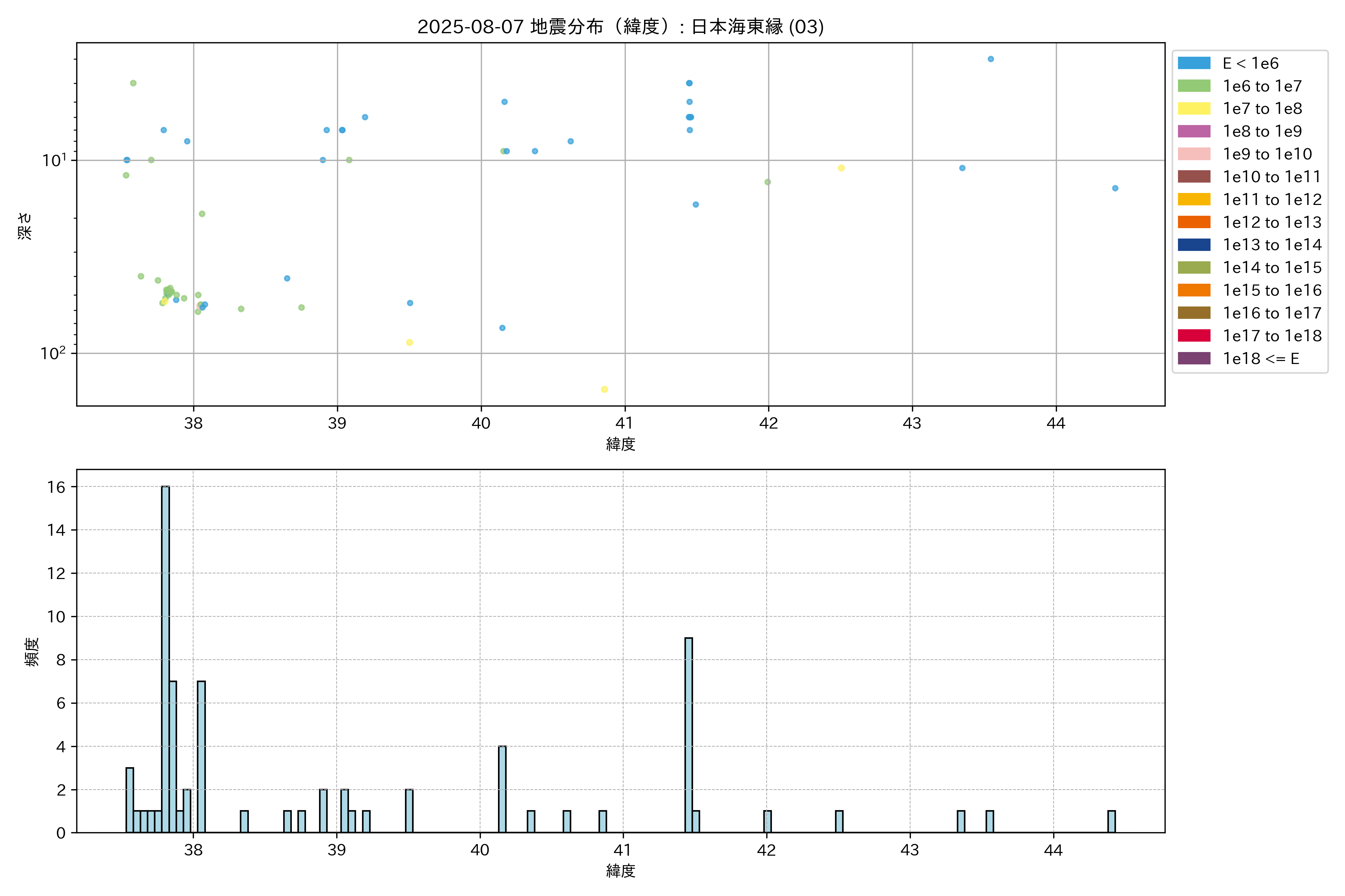 2025年08月07日 日本海東縁 エリア震源マップ