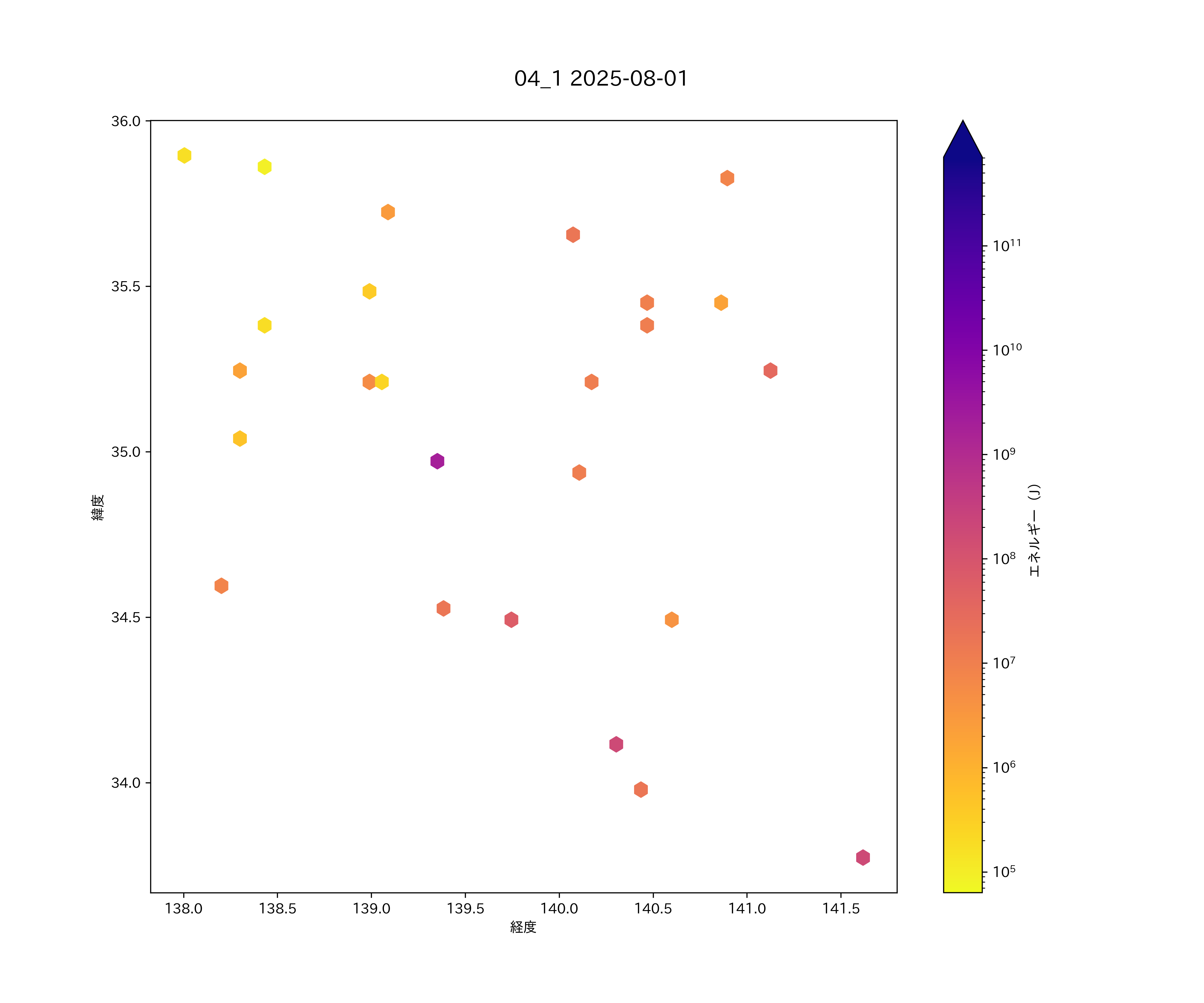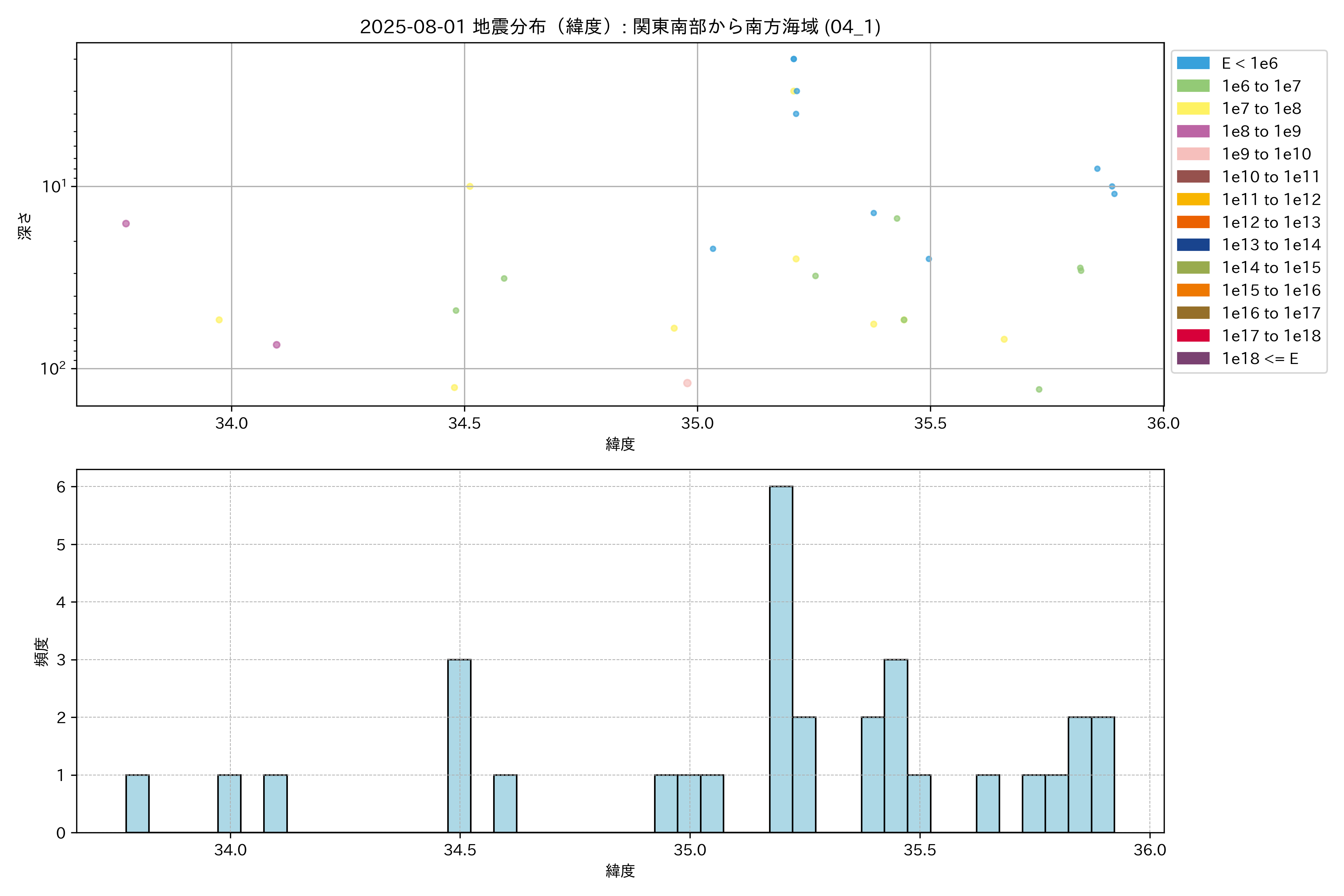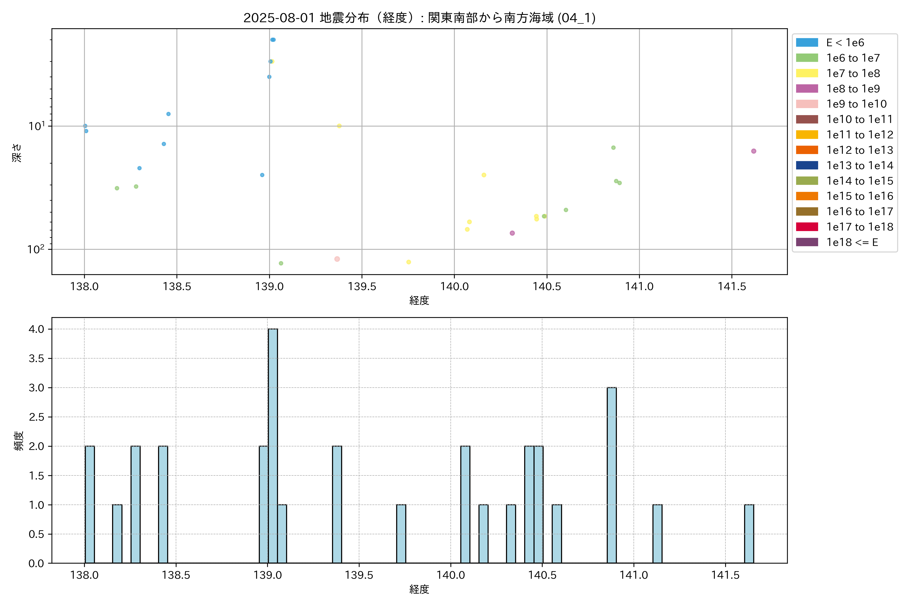 2025年08月01日 関東南部から南方海域 エリア震源マップ
