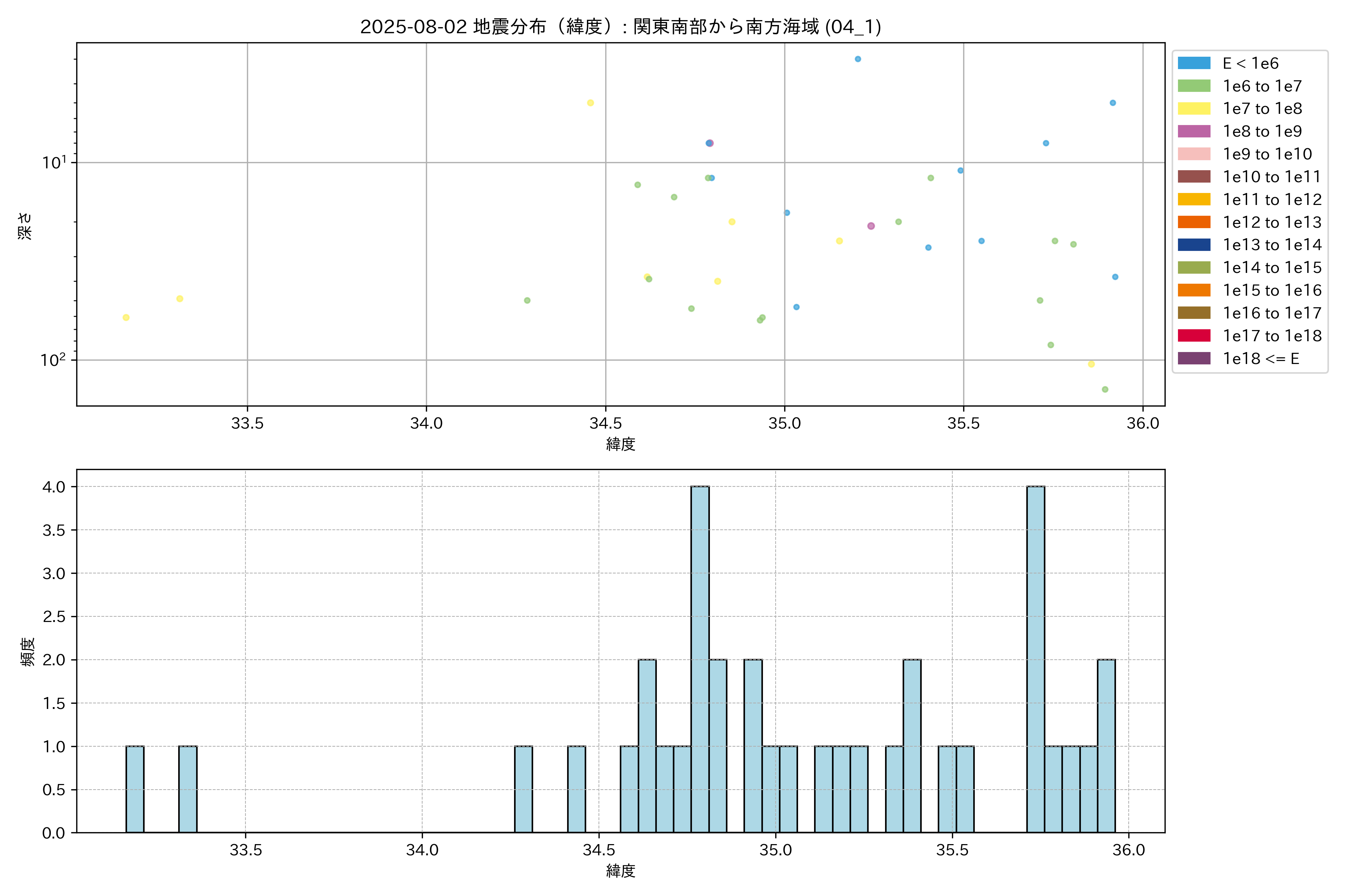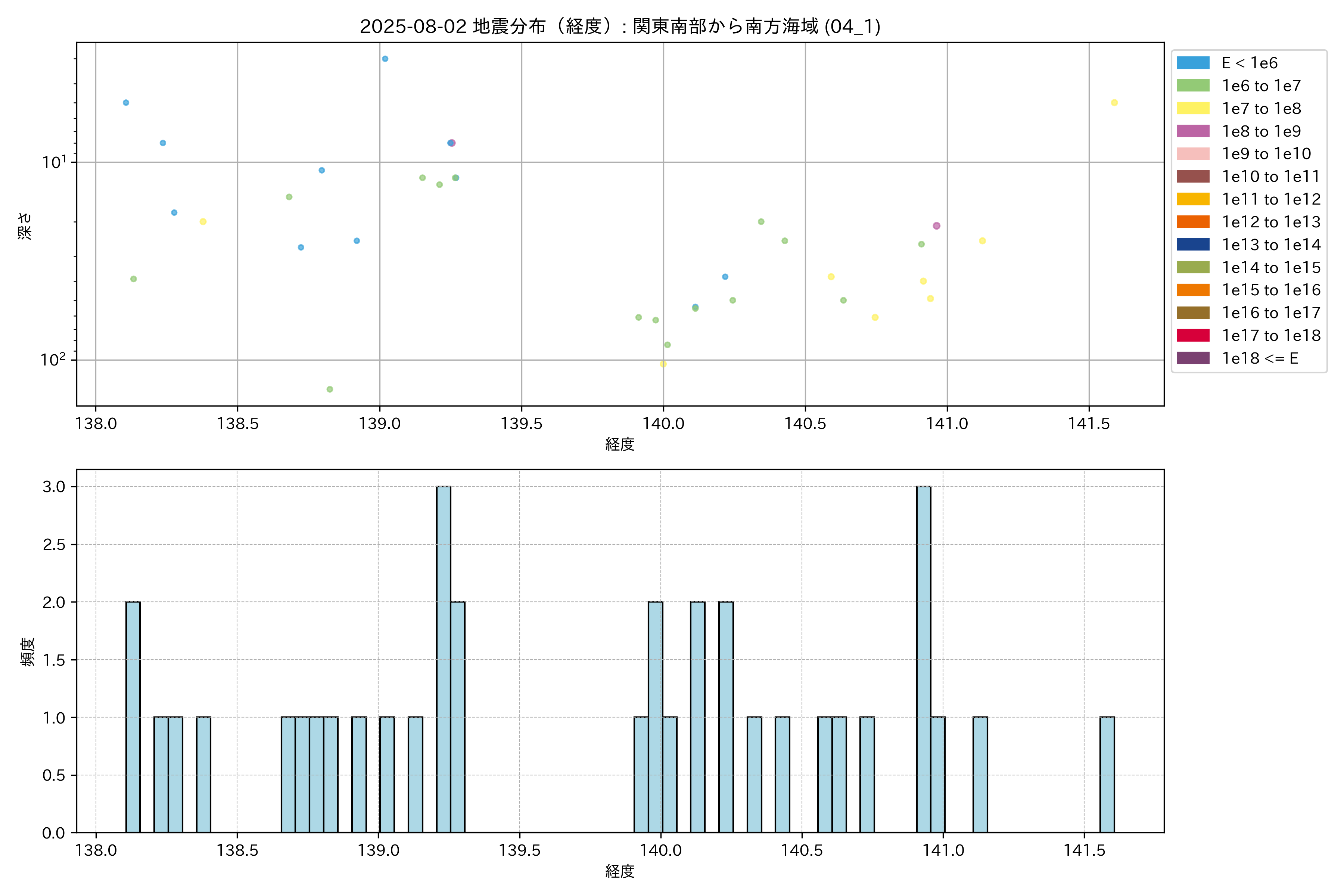 2025年08月02日 関東南部から南方海域 エリア震源マップ