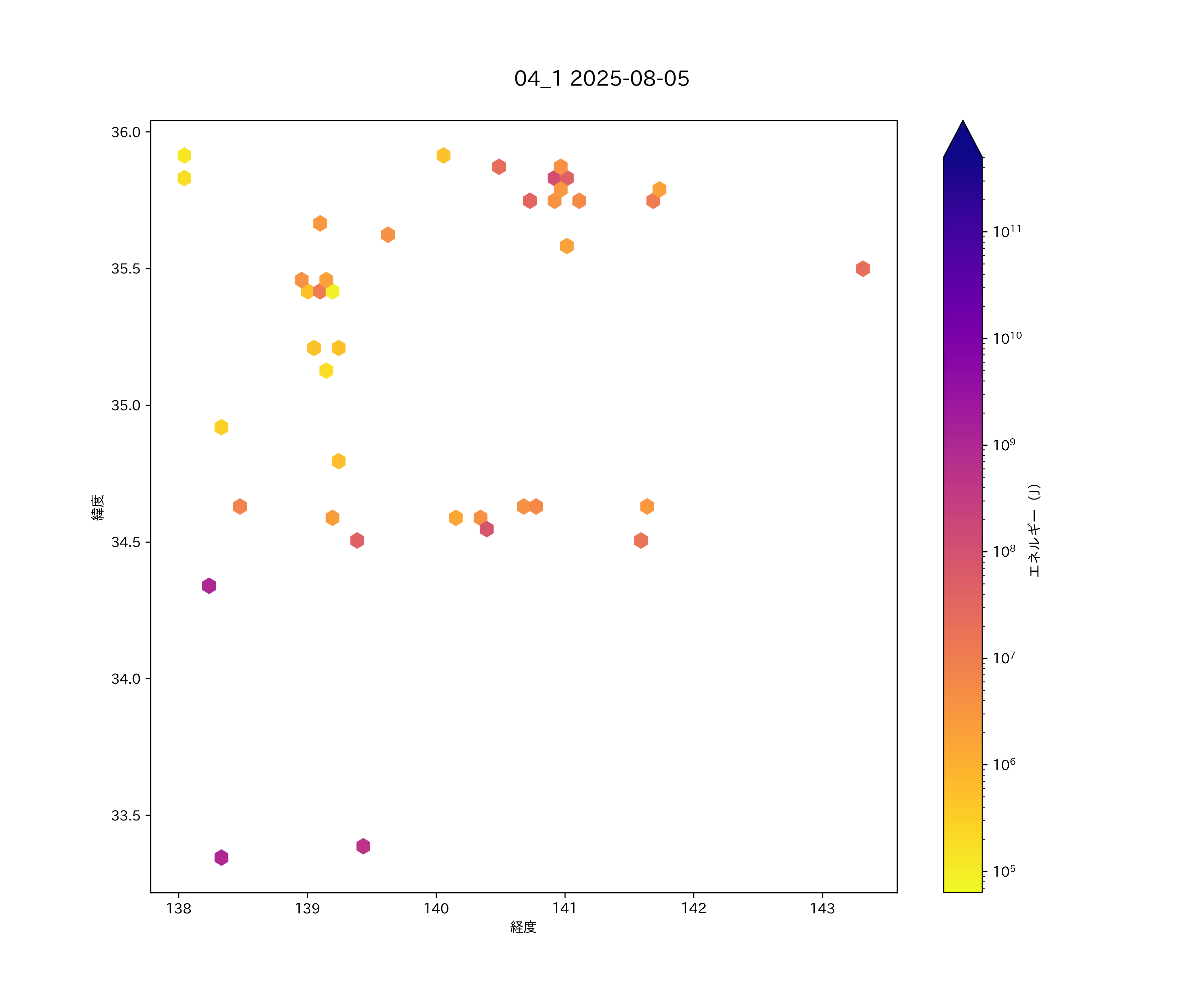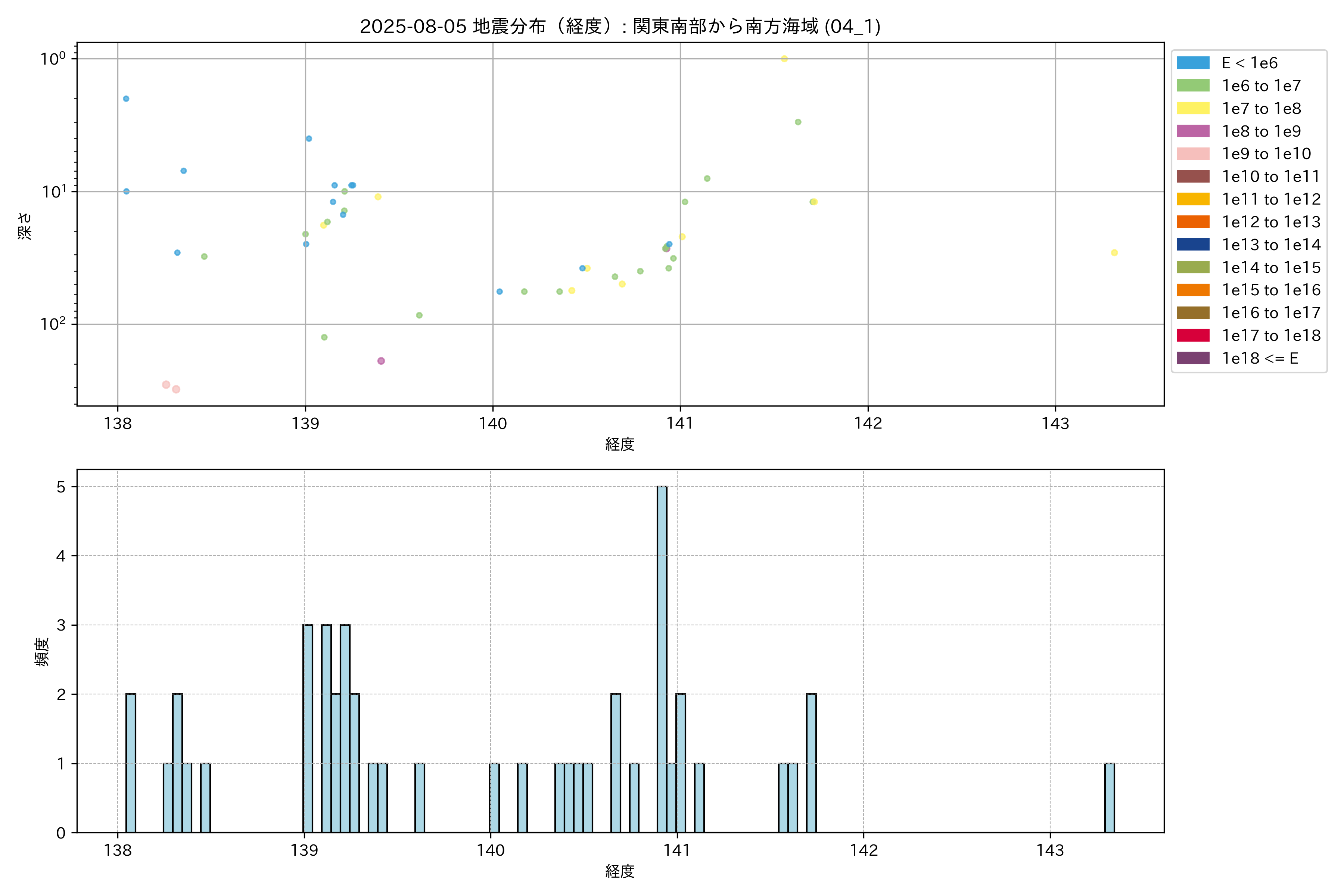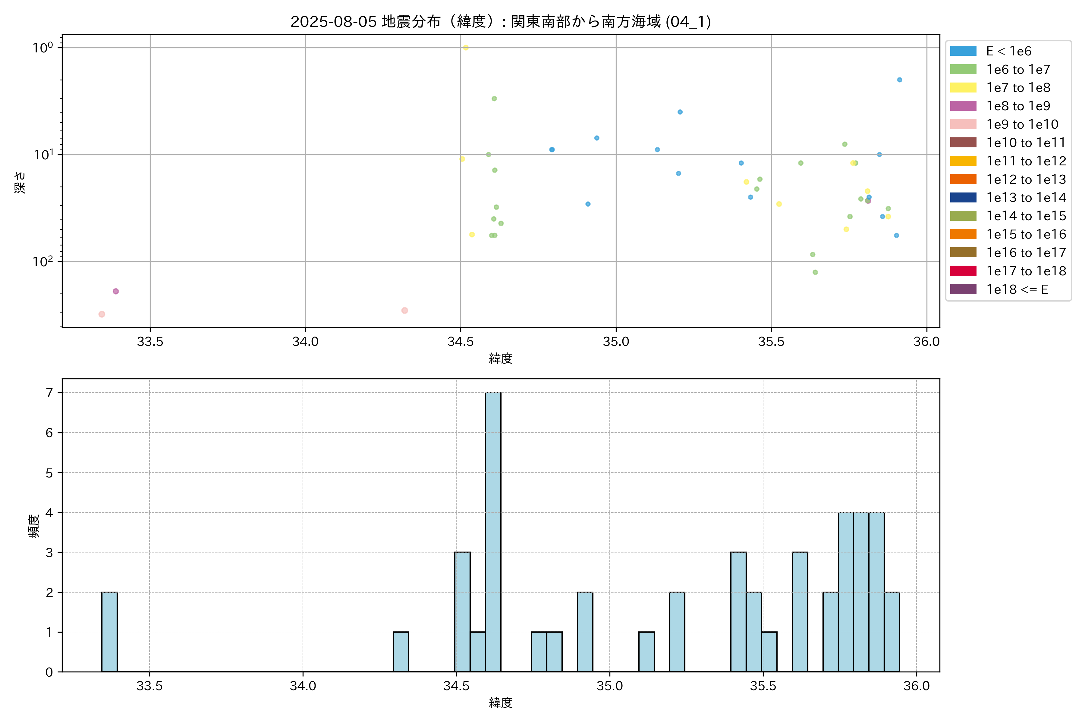 2025年08月05日 関東南部から南方海域 エリア震源マップ