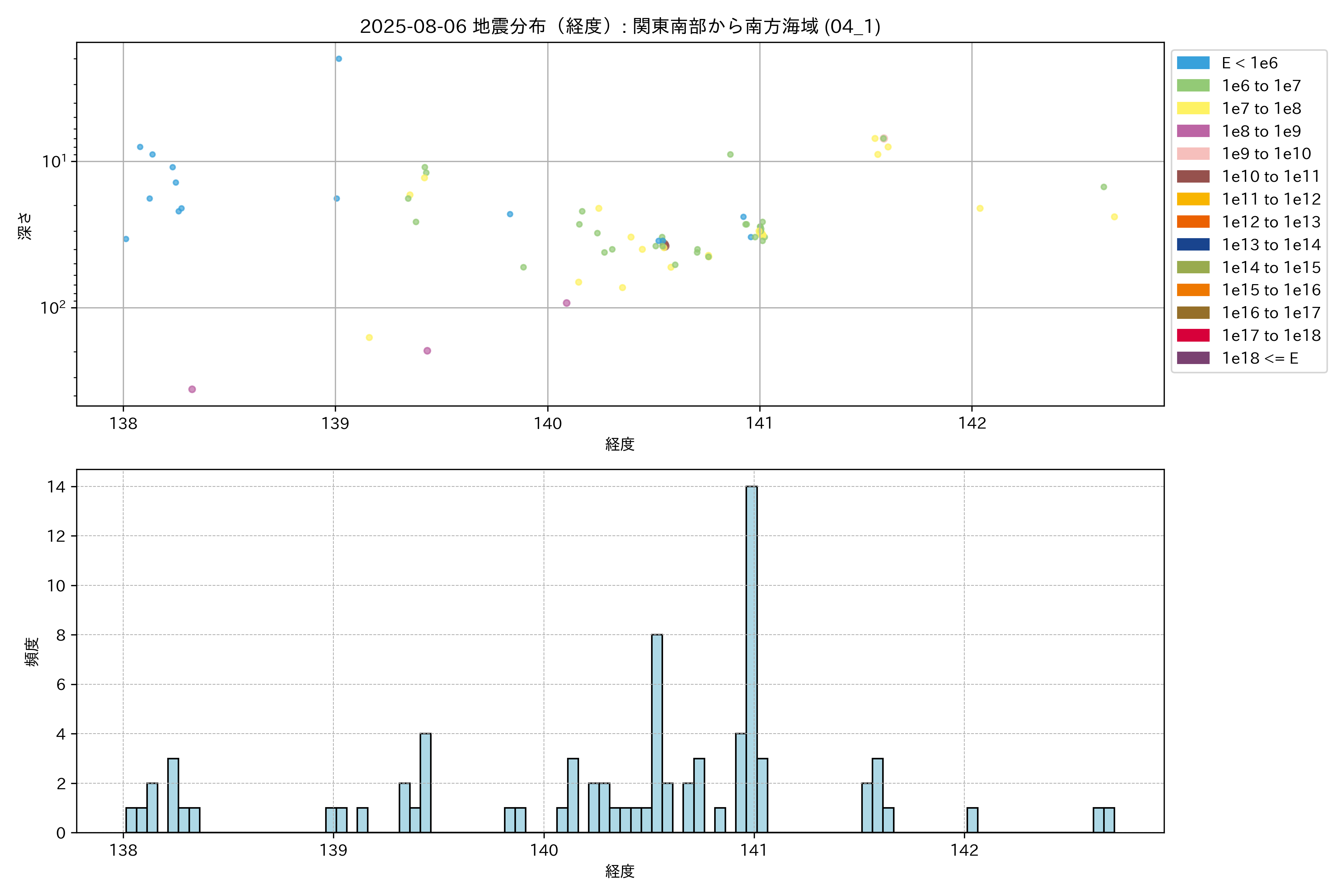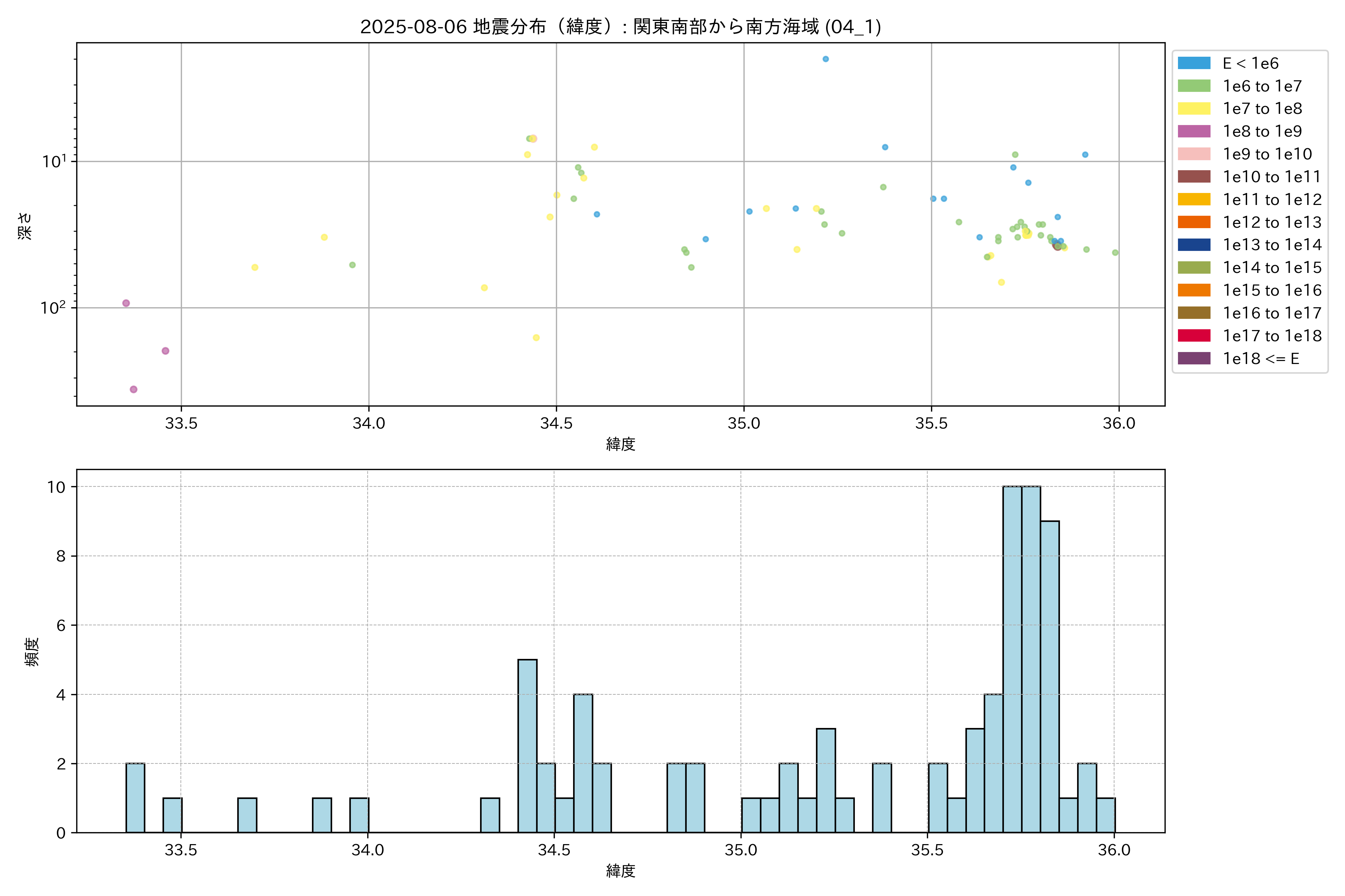 2025年08月06日 関東南部から南方海域 エリア震源マップ