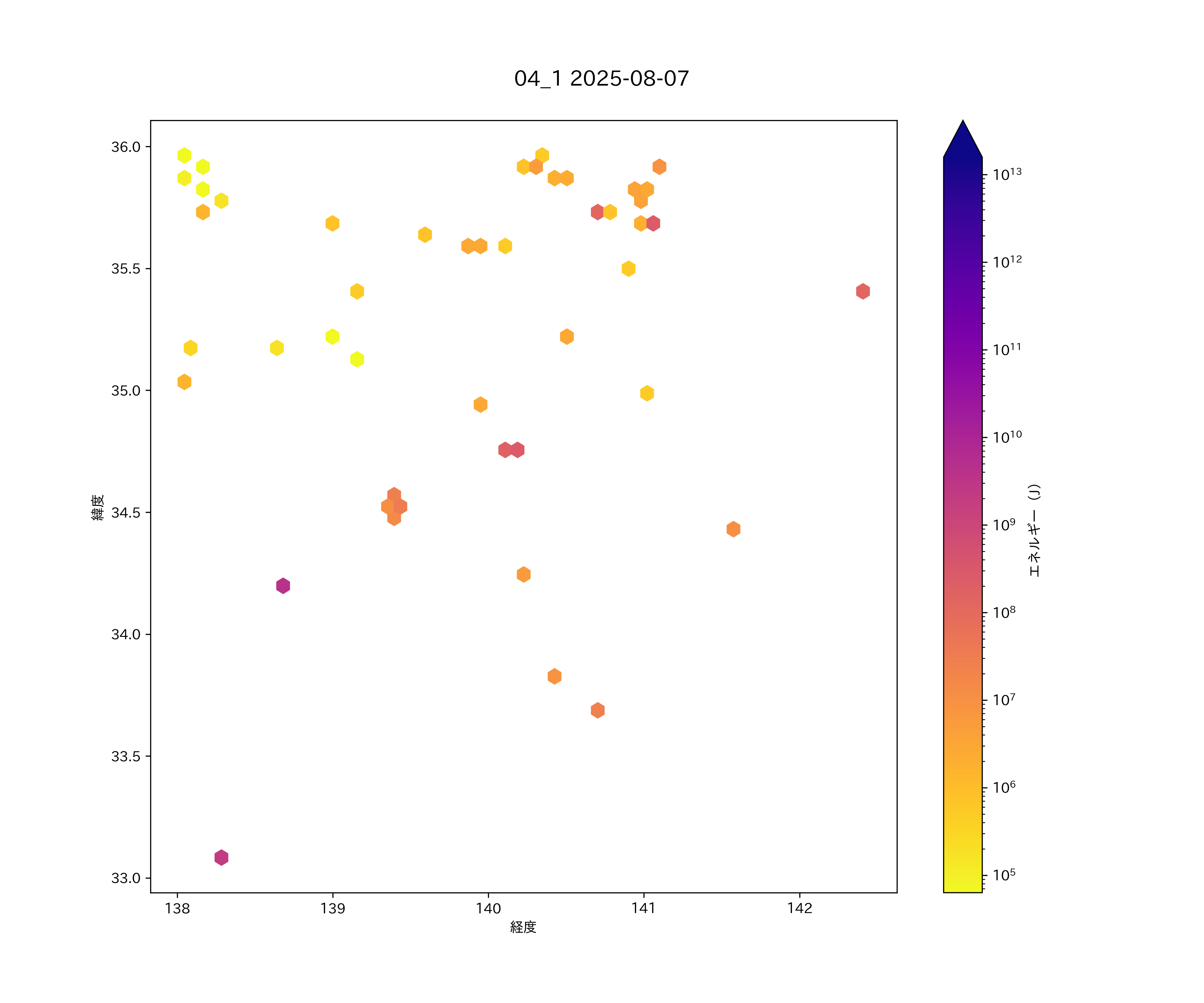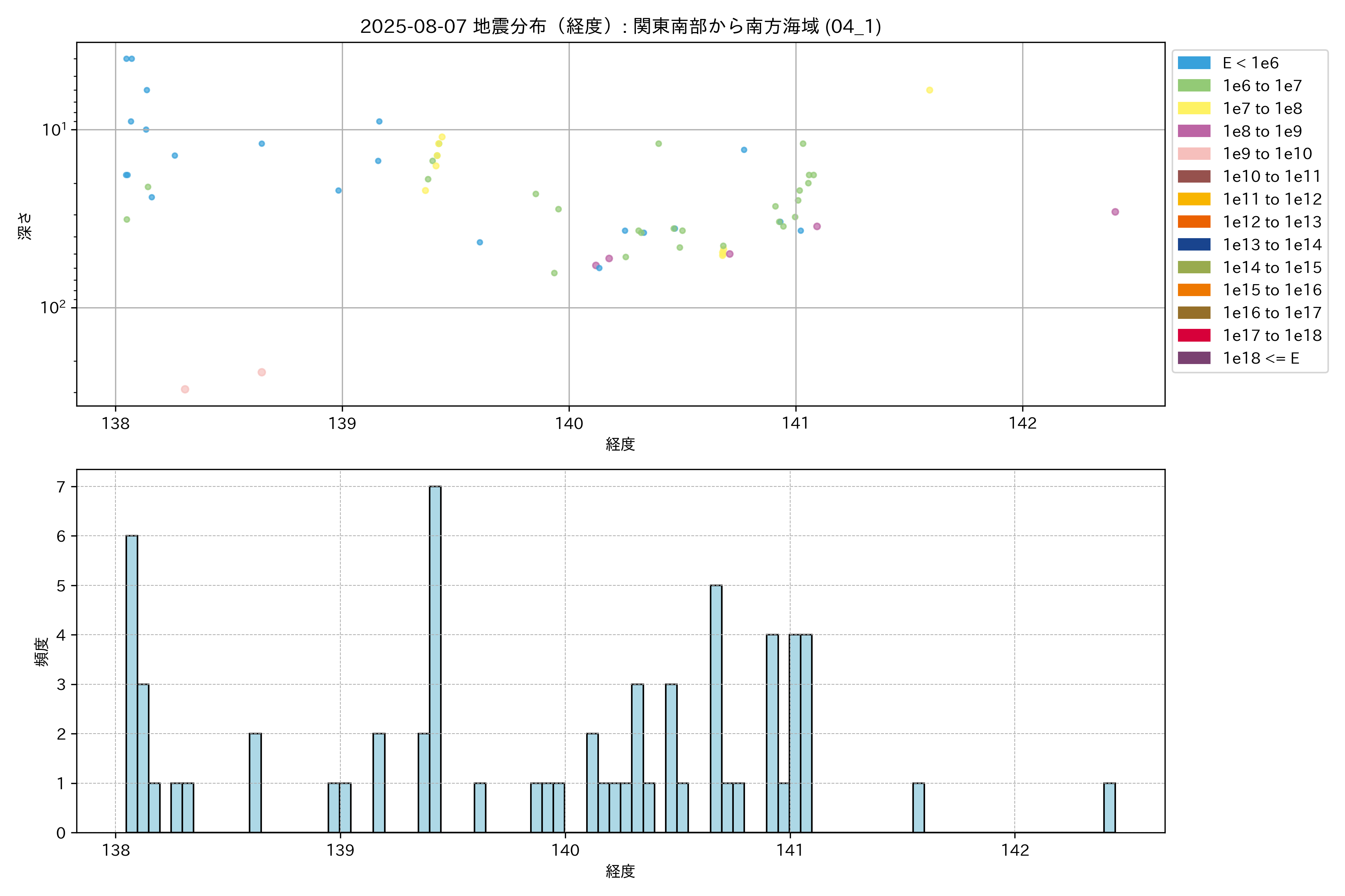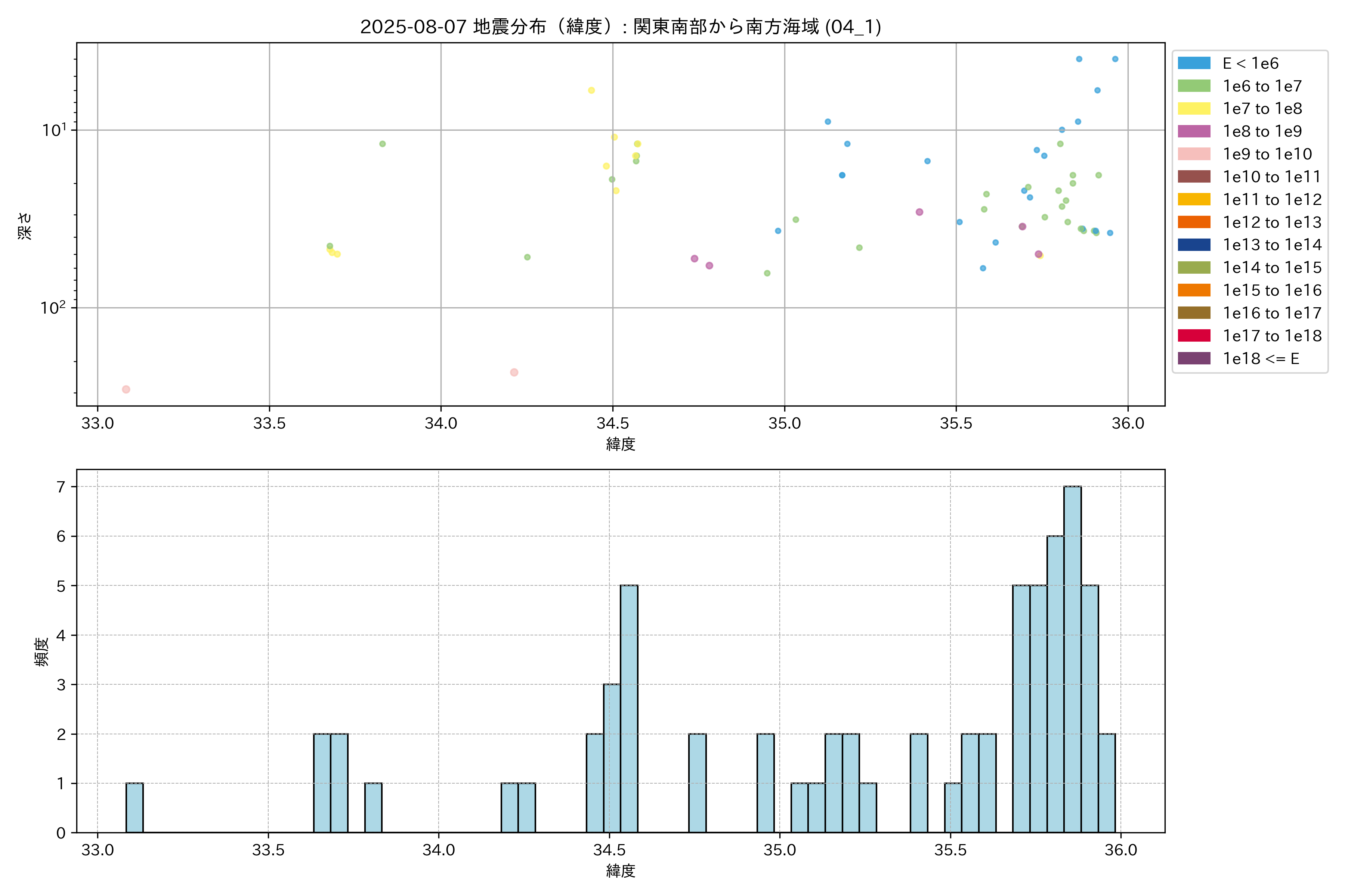 2025年08月07日 関東南部から南方海域 エリア震源マップ