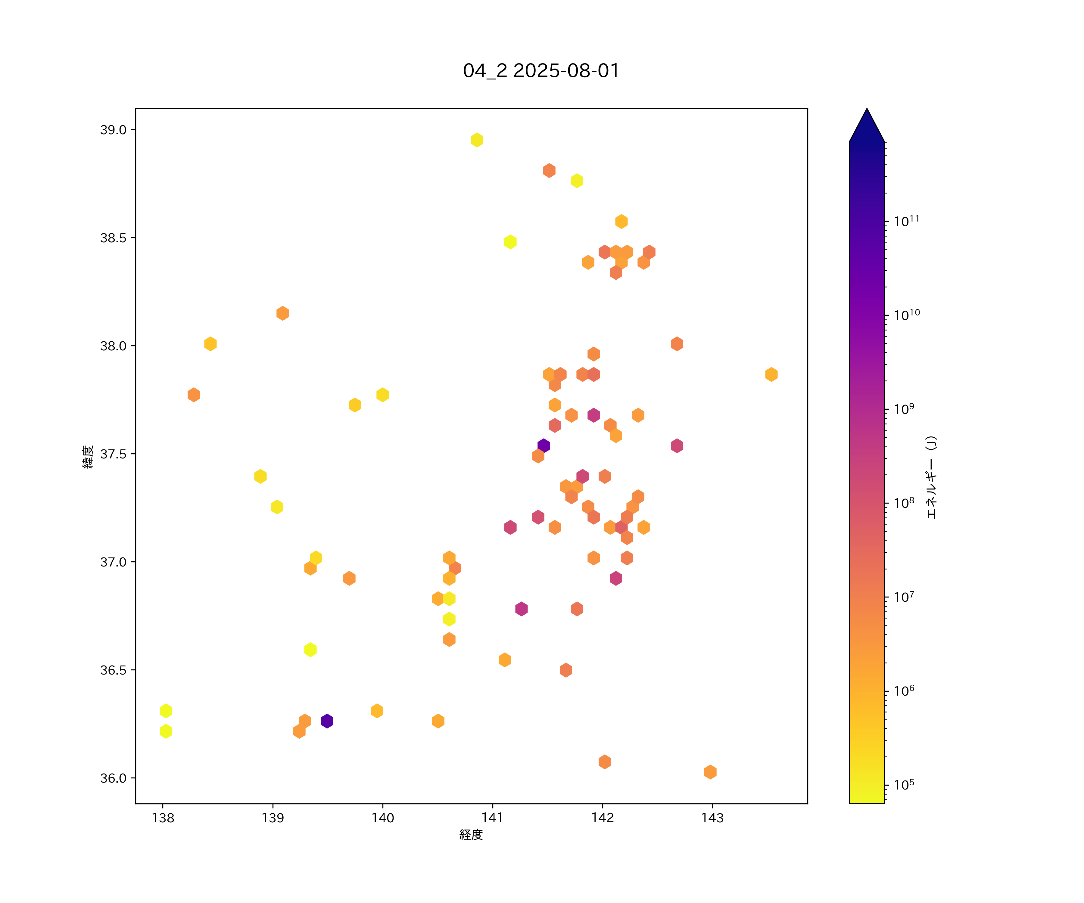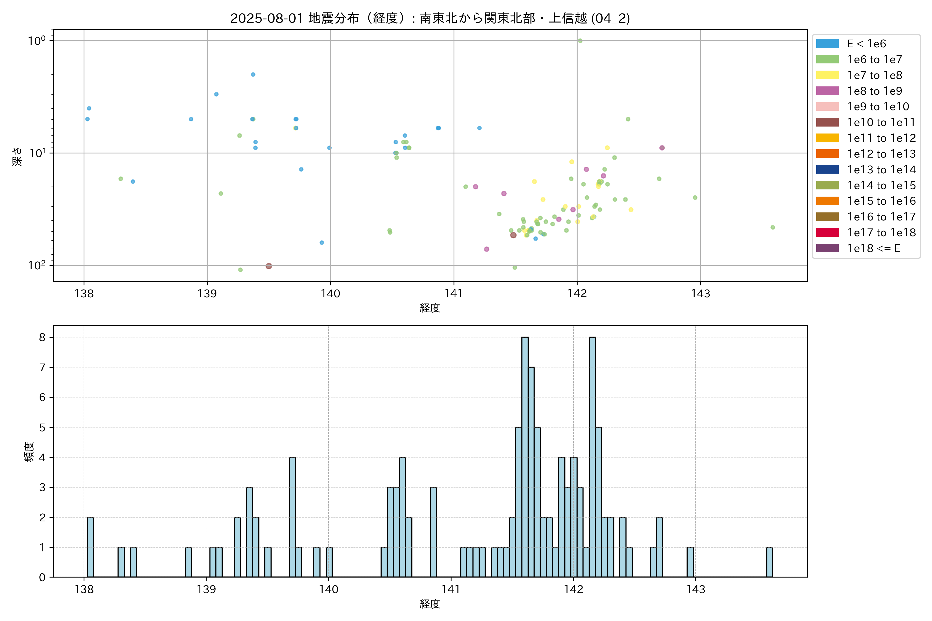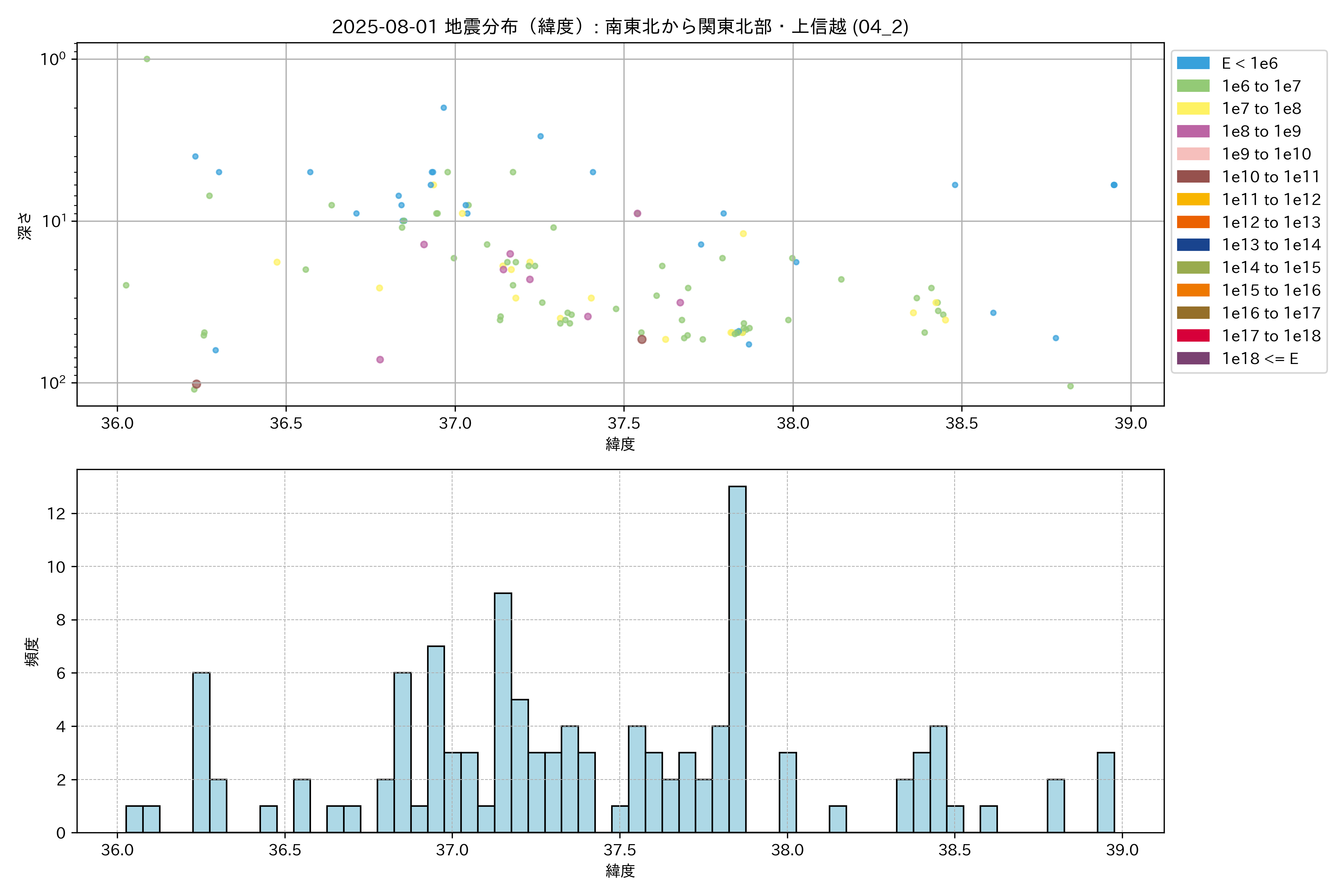 2025年08月01日 南東北から関東北部・上信越 エリア震源マップ