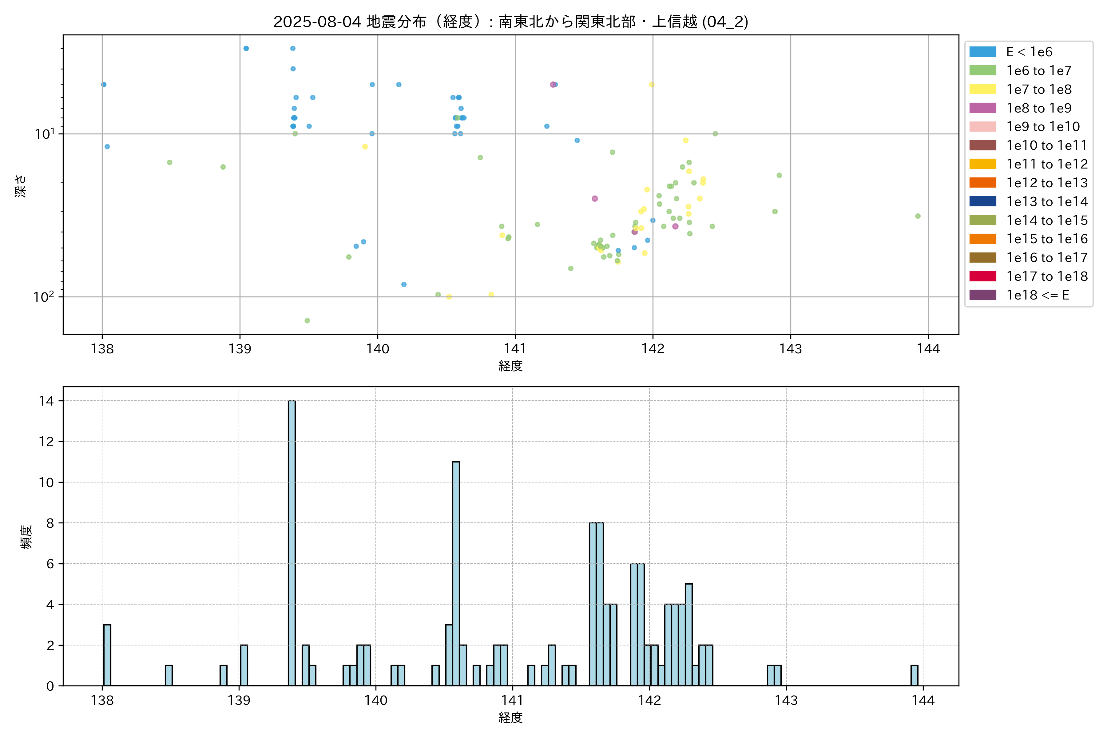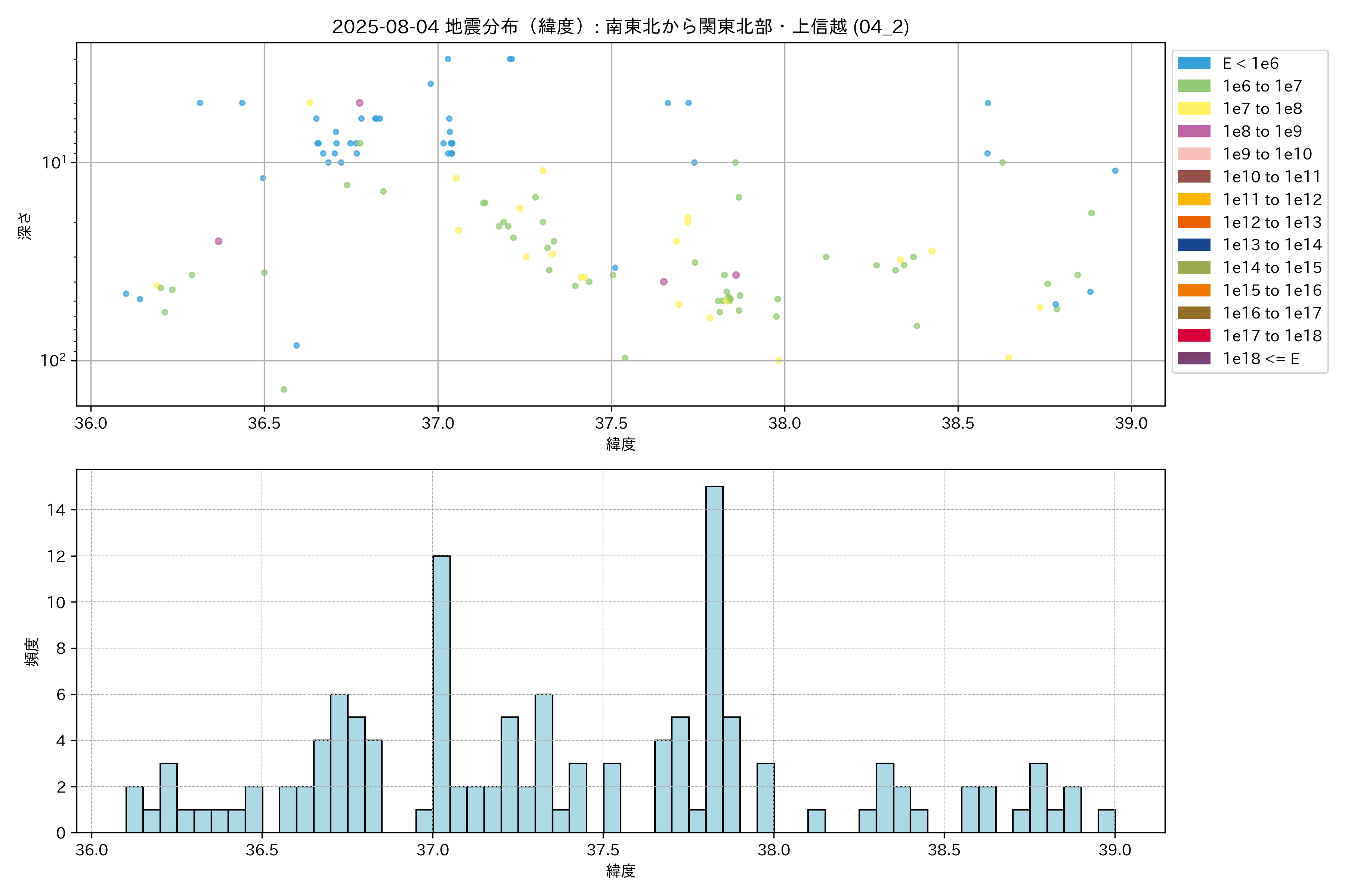 2025年08月04日 南東北から関東北部・上信越 エリア震源マップ
