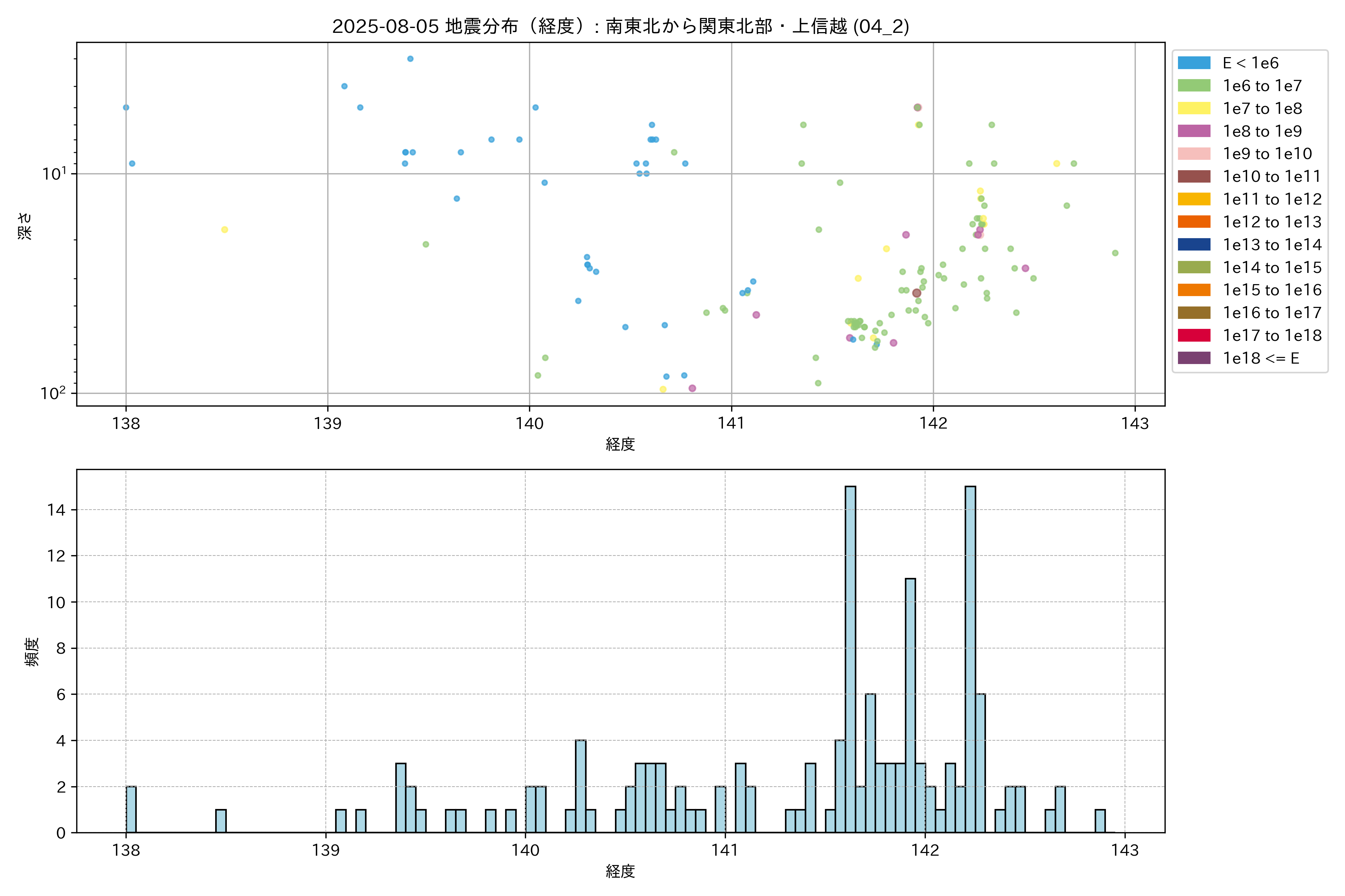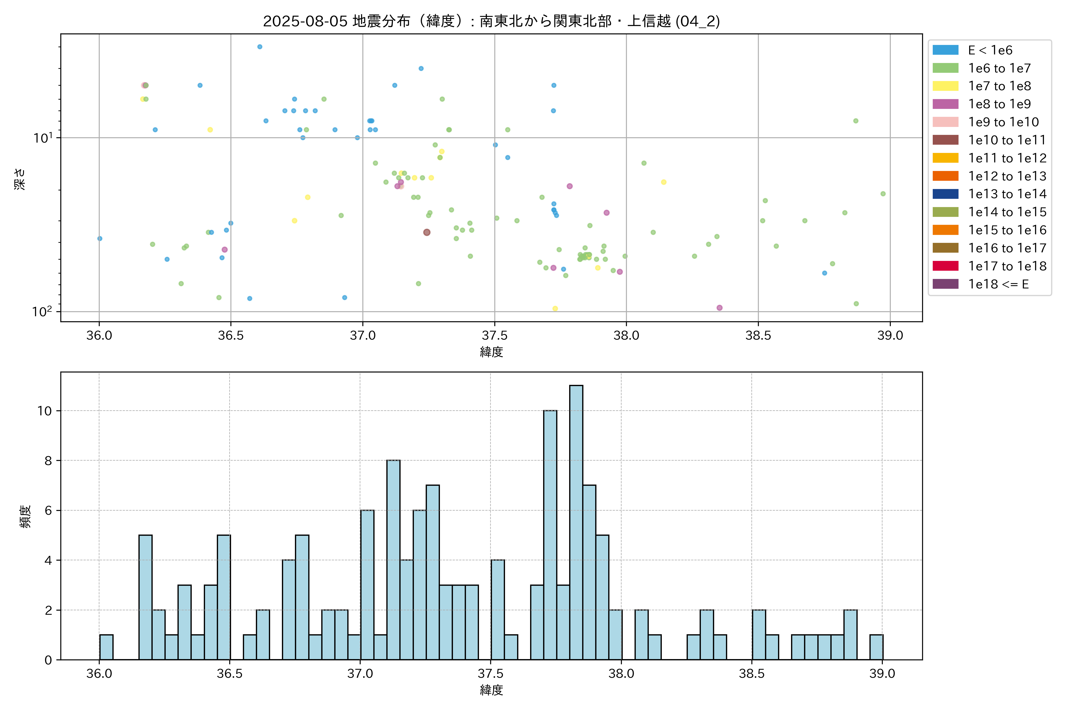 2025年08月05日 南東北から関東北部・上信越 エリア震源マップ
