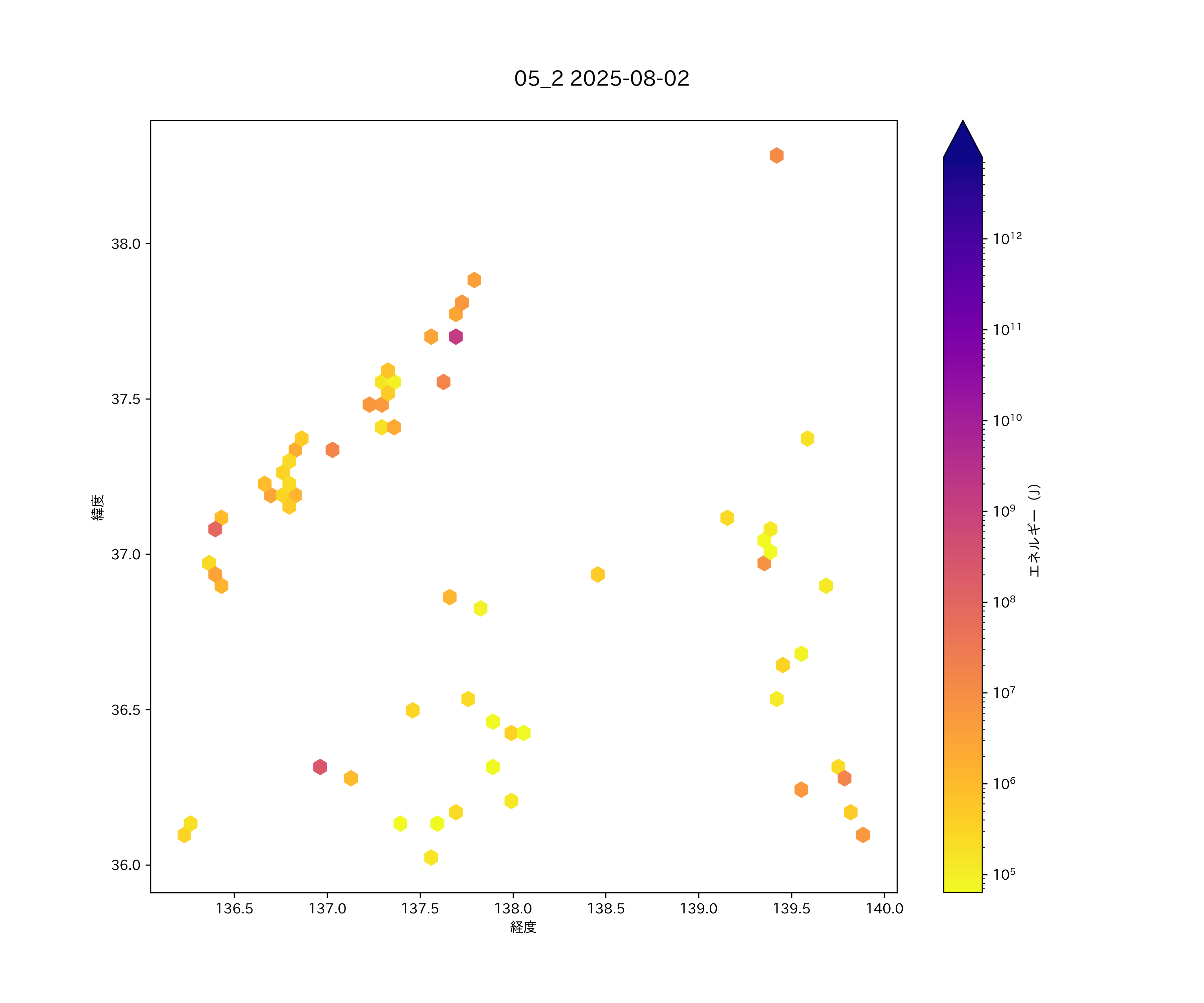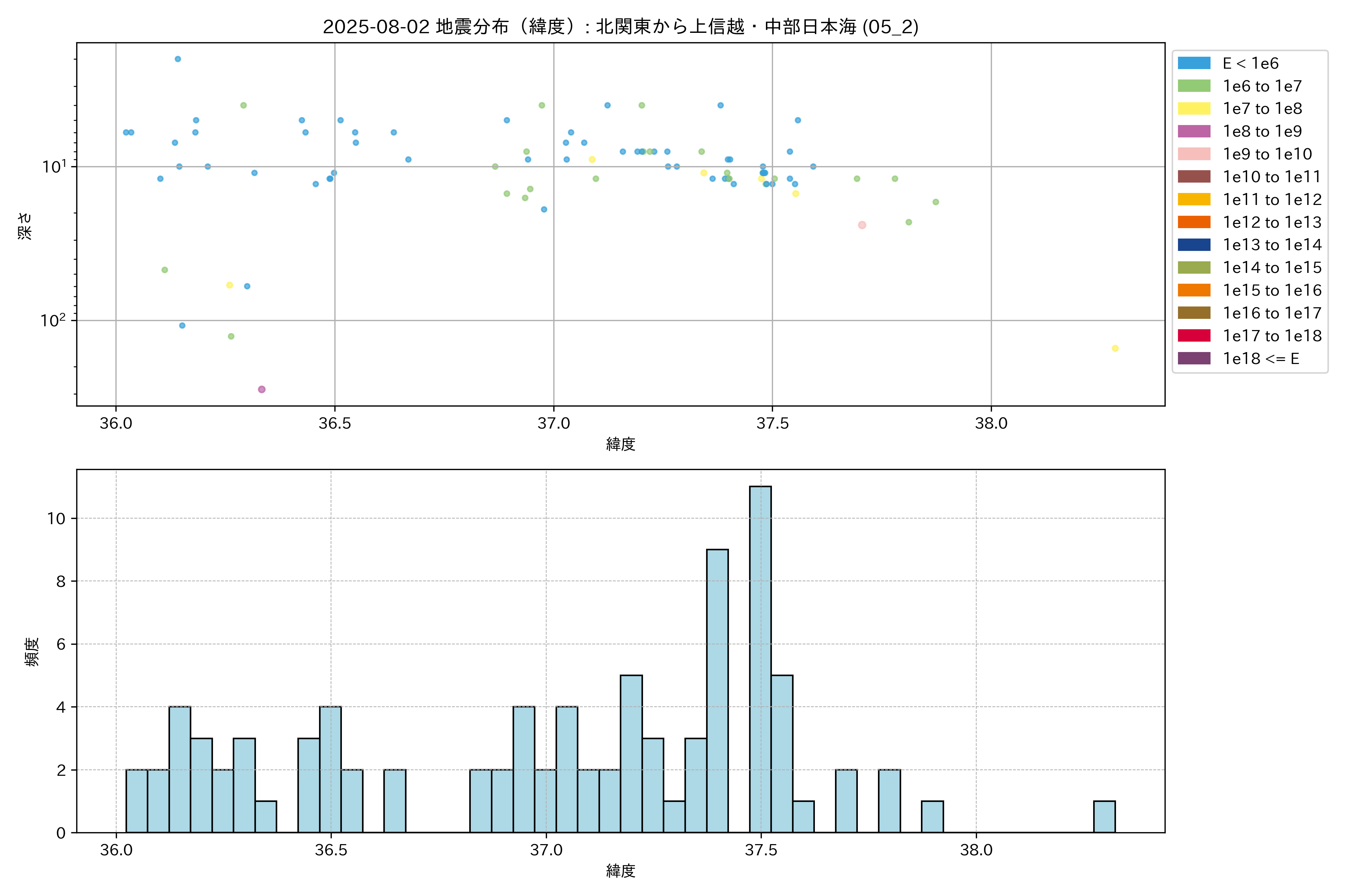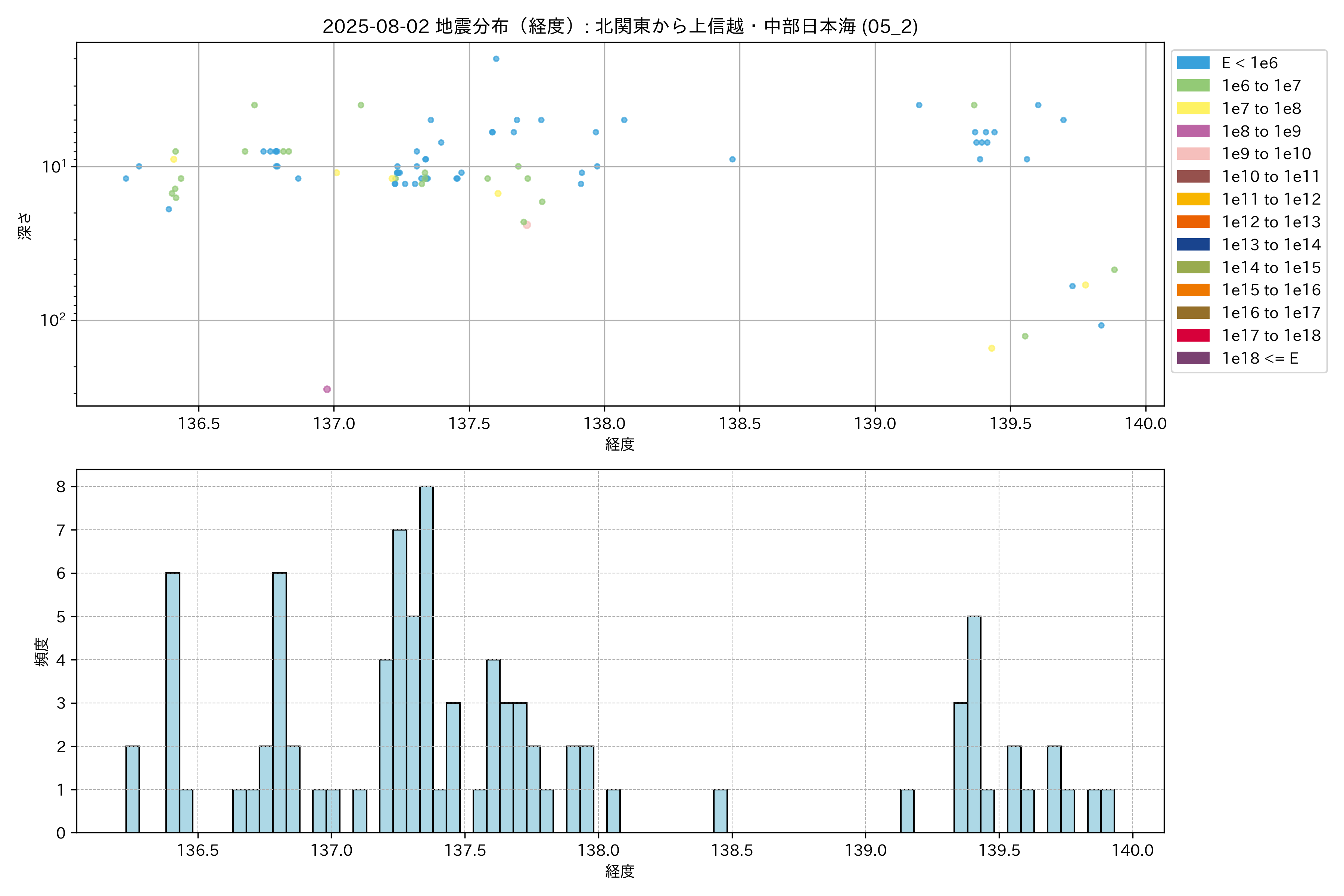 2025年08月02日 北関東から上信越・中部日本海 エリア震源マップ