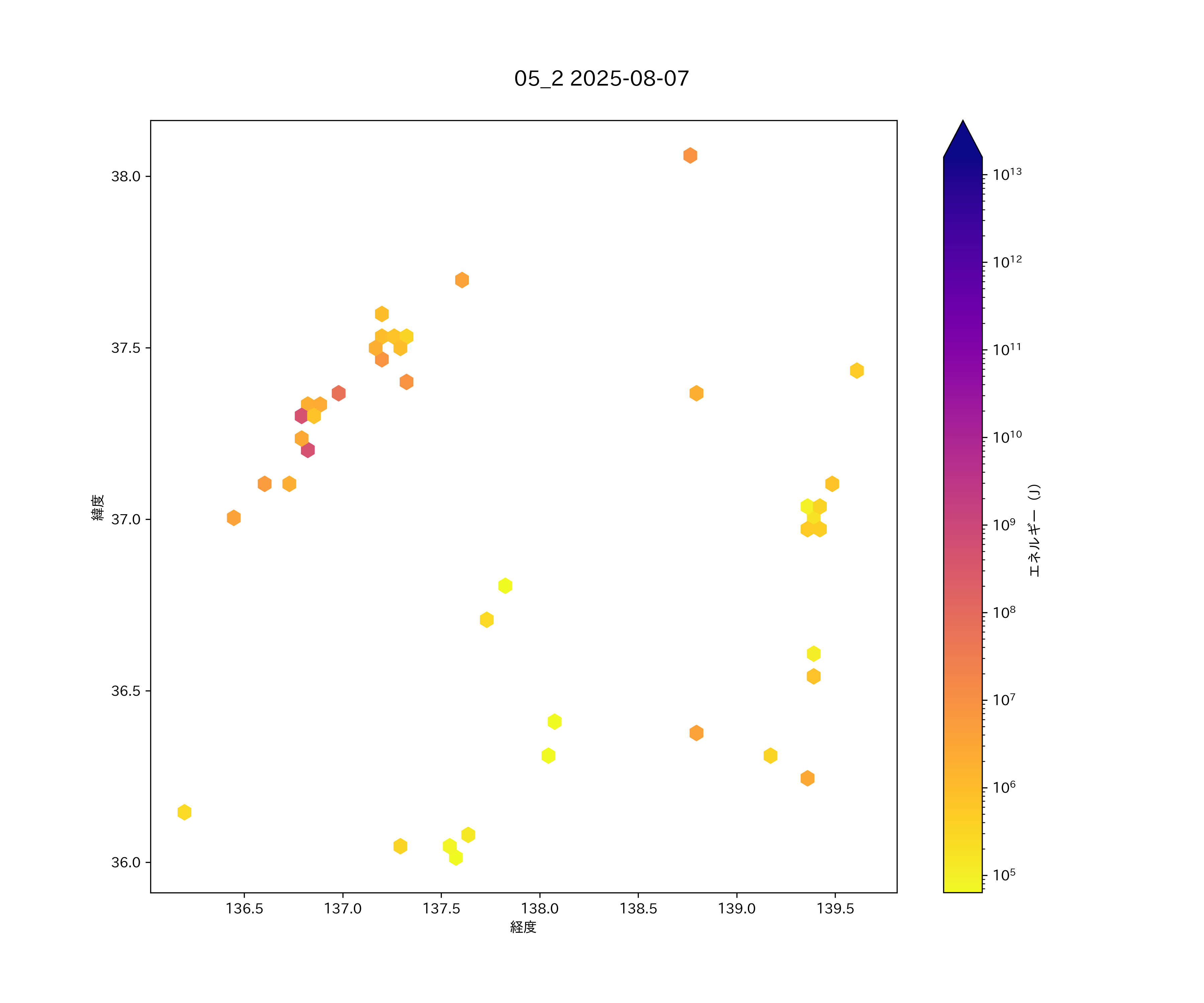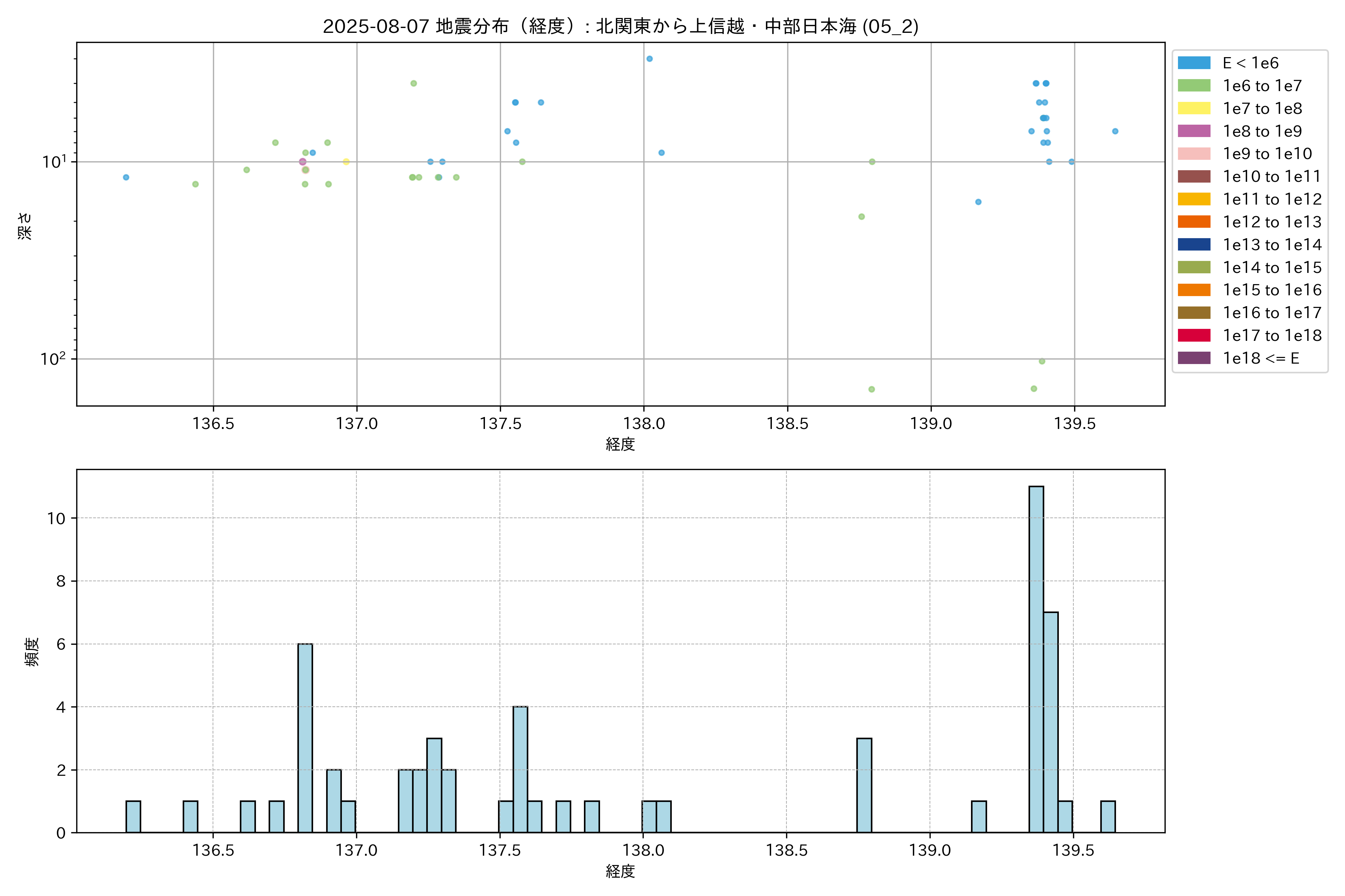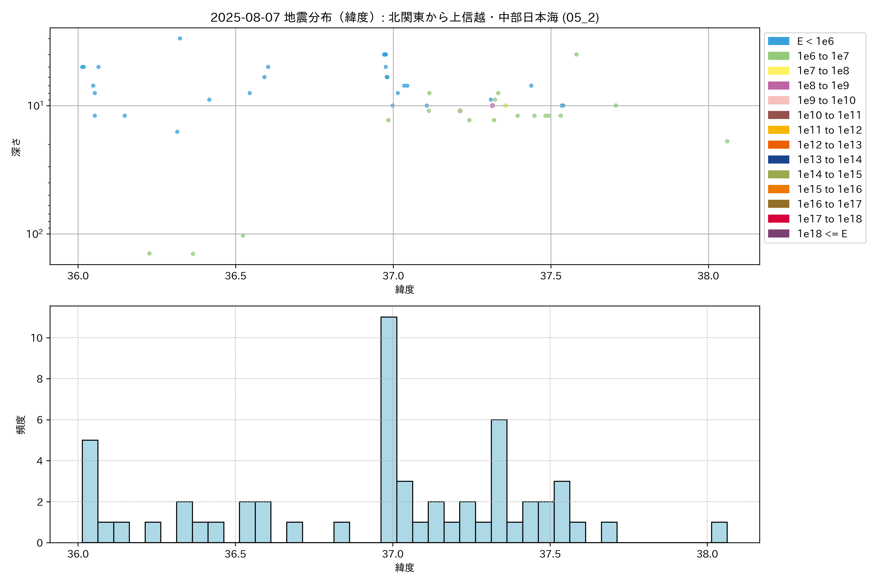 2025年08月07日 北関東から上信越・中部日本海 エリア震源マップ