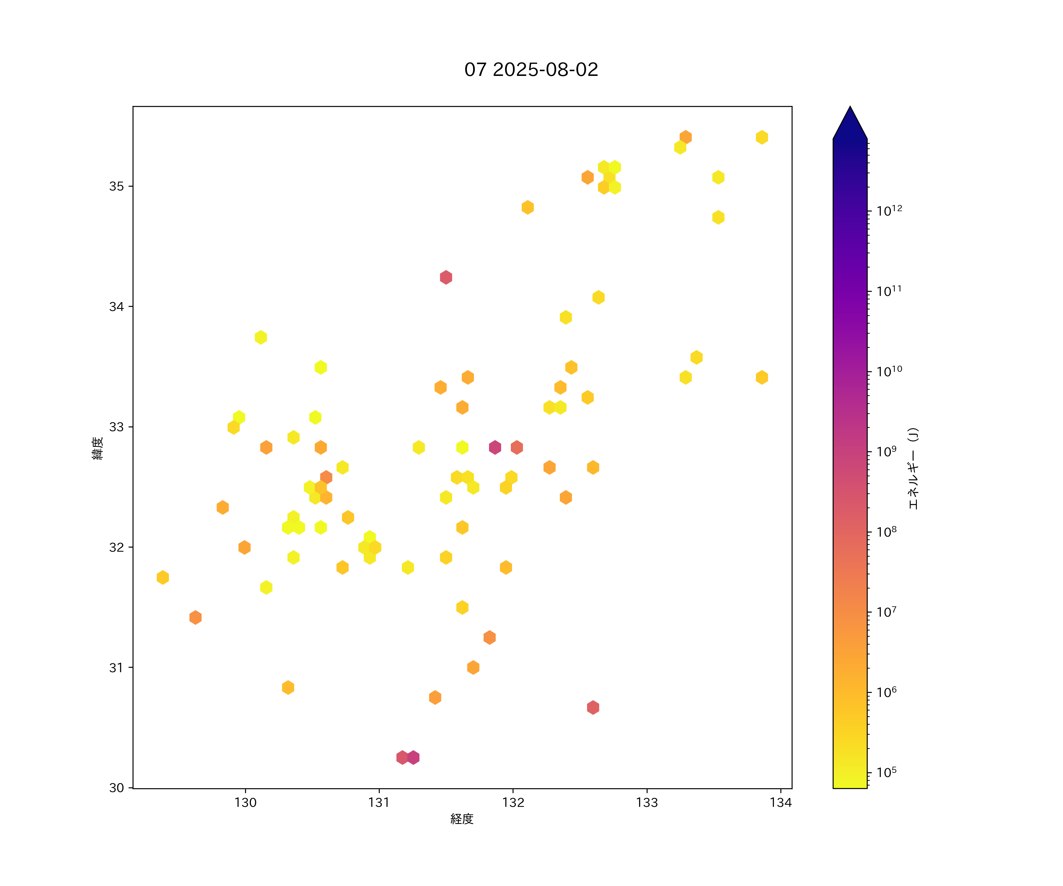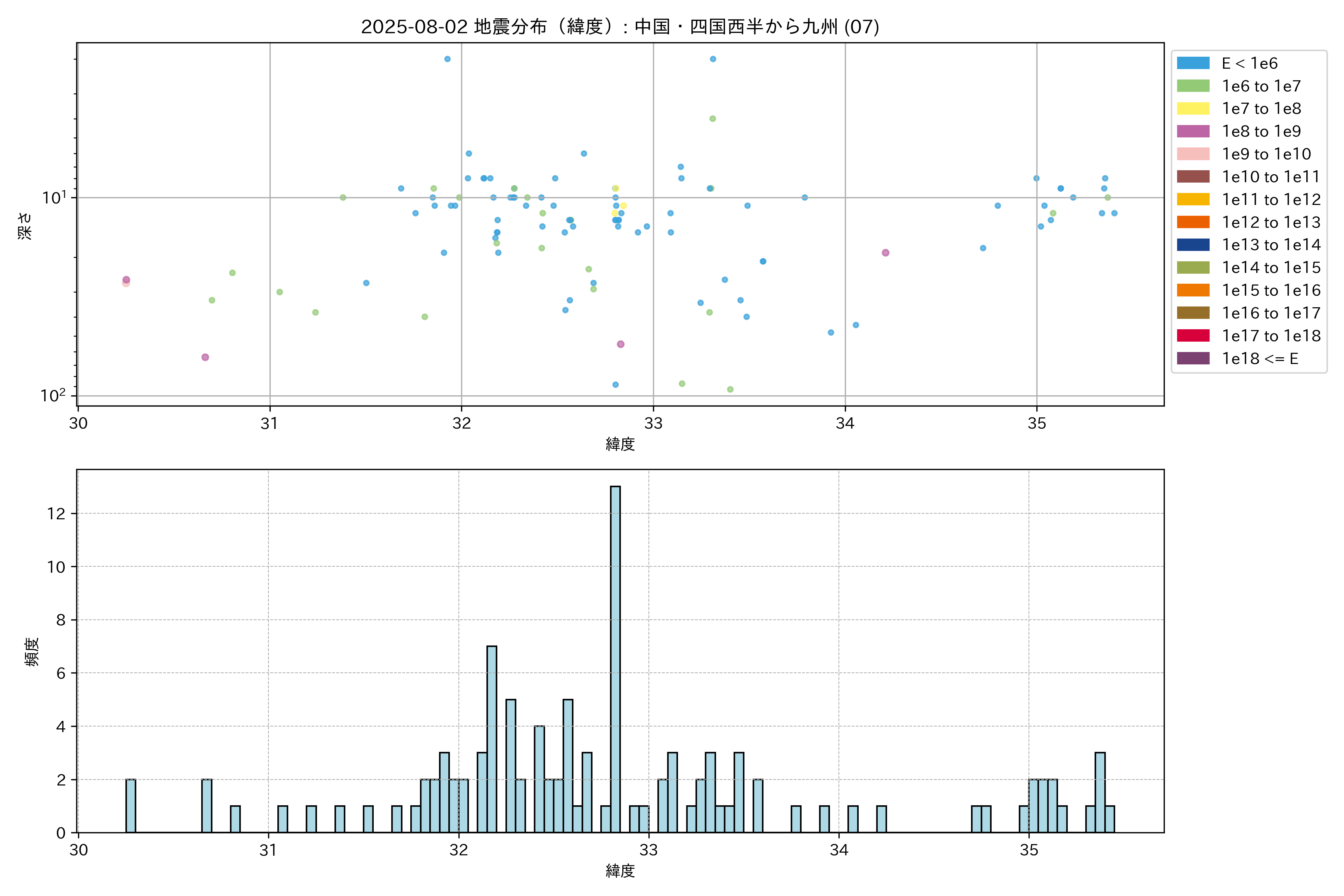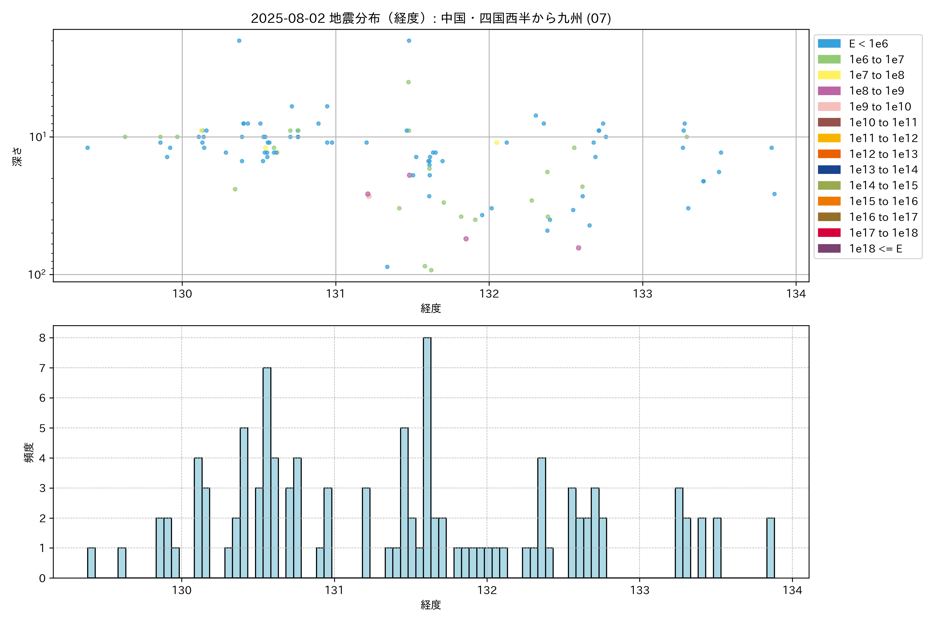 2025年08月02日 中国・四国西半から九州 エリア震源マップ