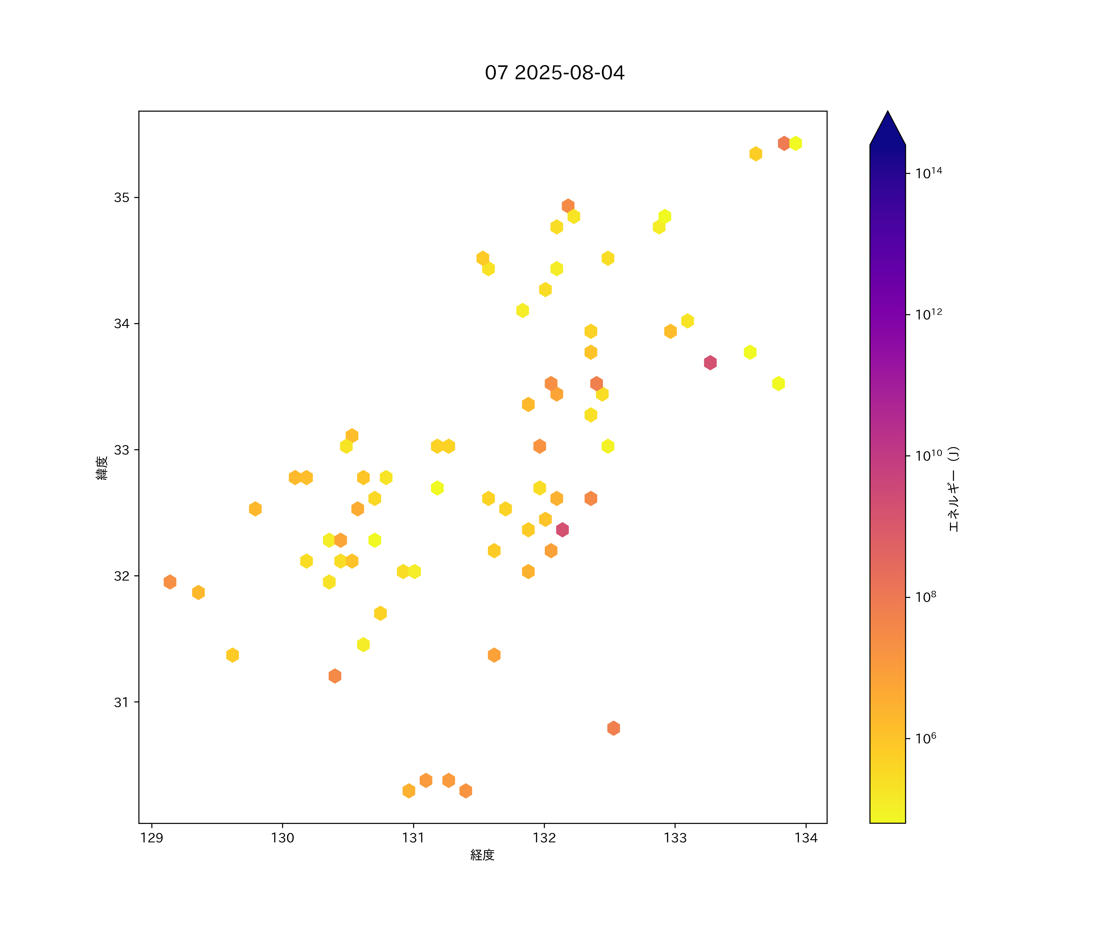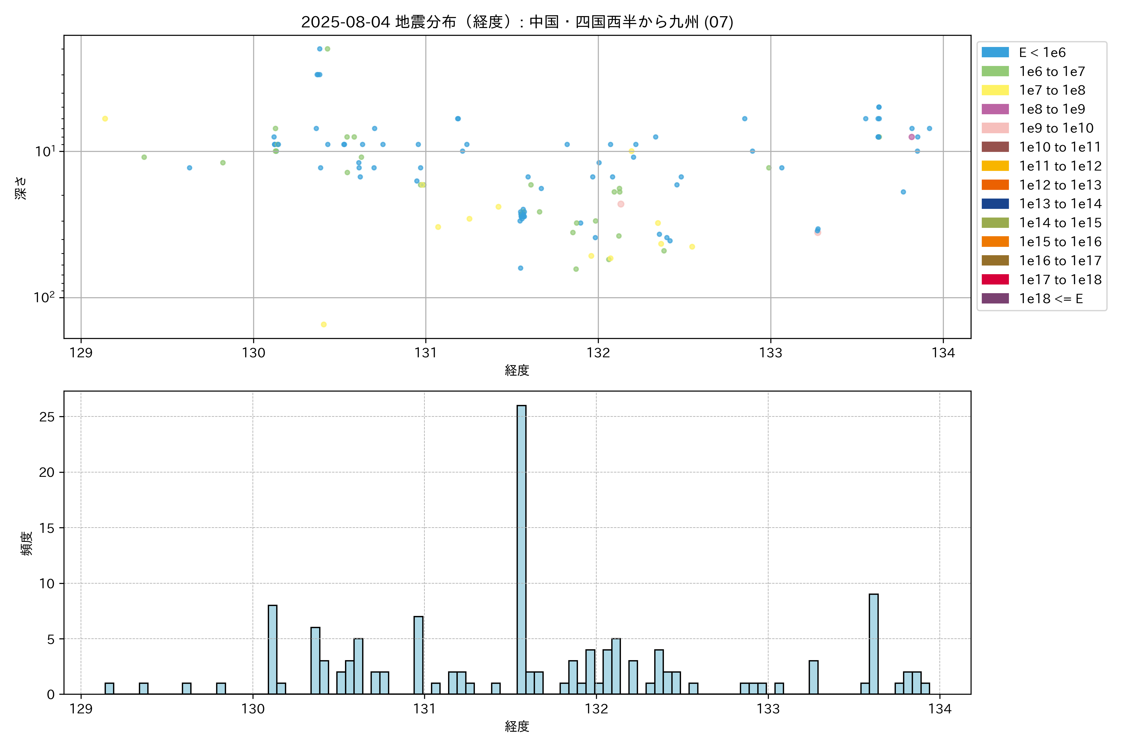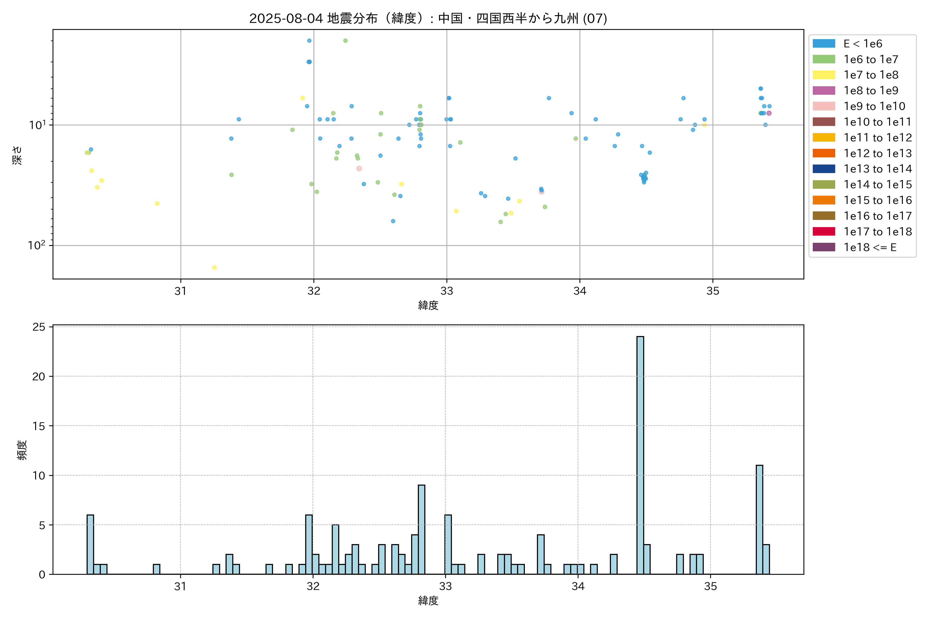 2025年08月04日 中国・四国西半から九州 エリア震源マップ